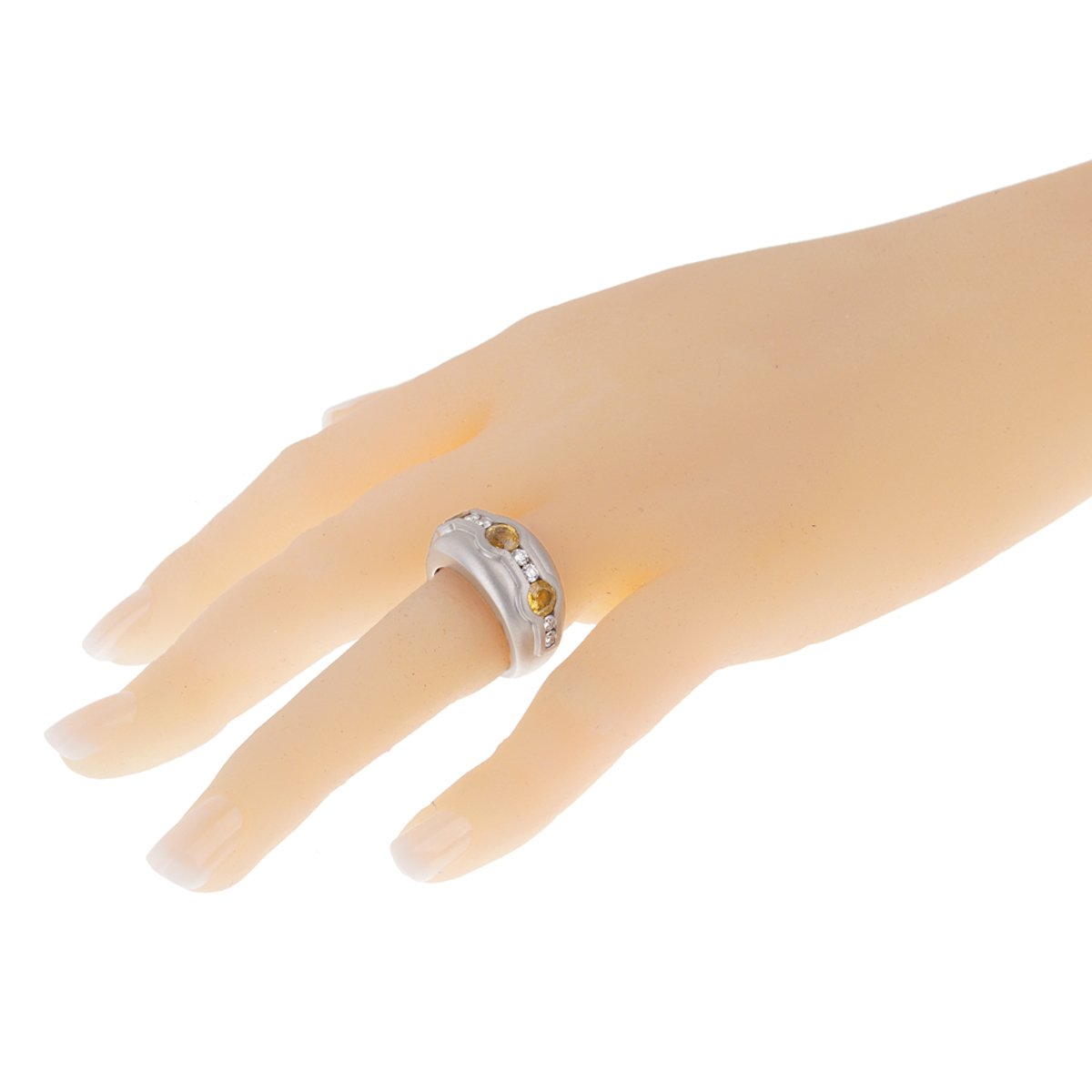 The Barry Kieselstein-Cord Diamond and Yellow Sapphire Platinum Ring exemplifies the designer's dedication to merging classic elegance with contemporary design. Crafted in 1997, this ring showcases Kieselstein-Cord's signature aesthetic, blending luxurious materials with meticulous craftsmanship.