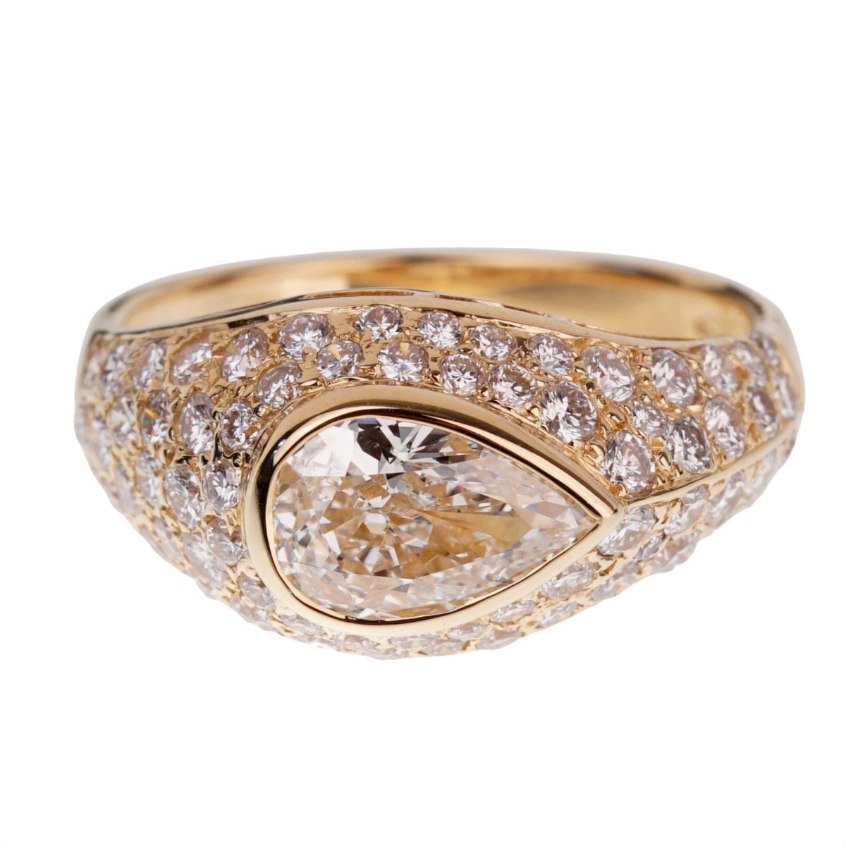 Bulgari Pear Shaped Diamond Yellow Gold Cocktail Ring