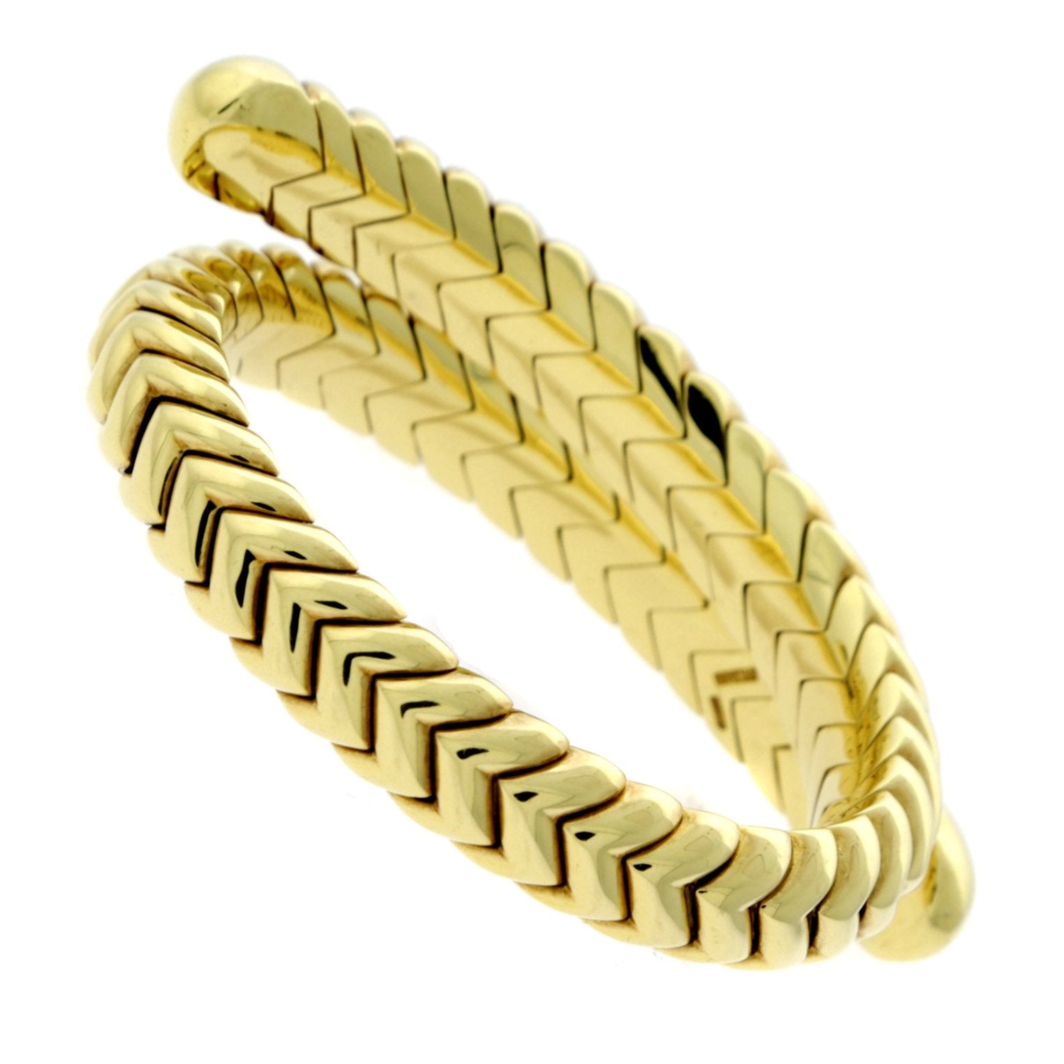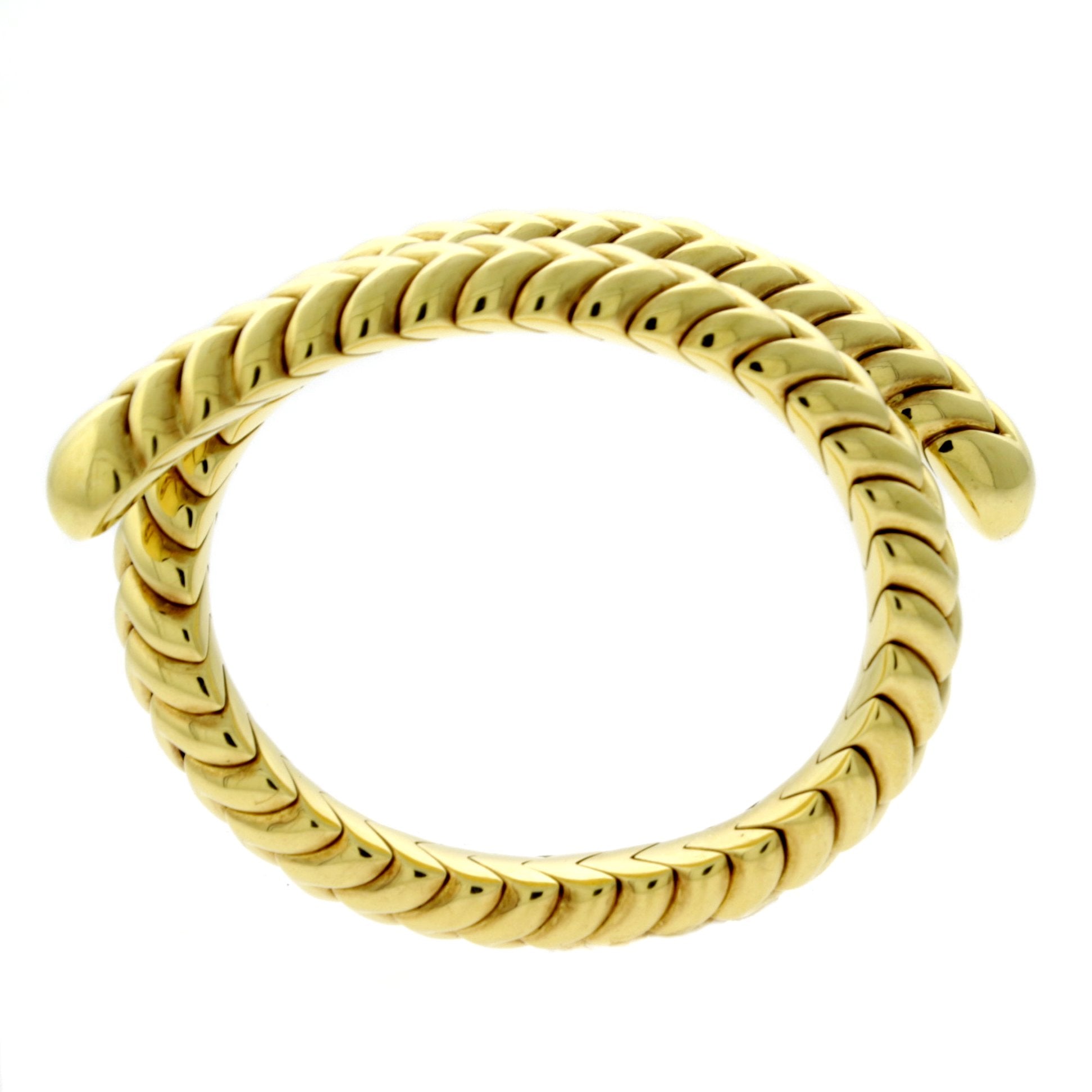 A fabulous highly collectible authentic Bulgari bracelet from the Spiga collection featuring a flexible 18k yellow gold link.
