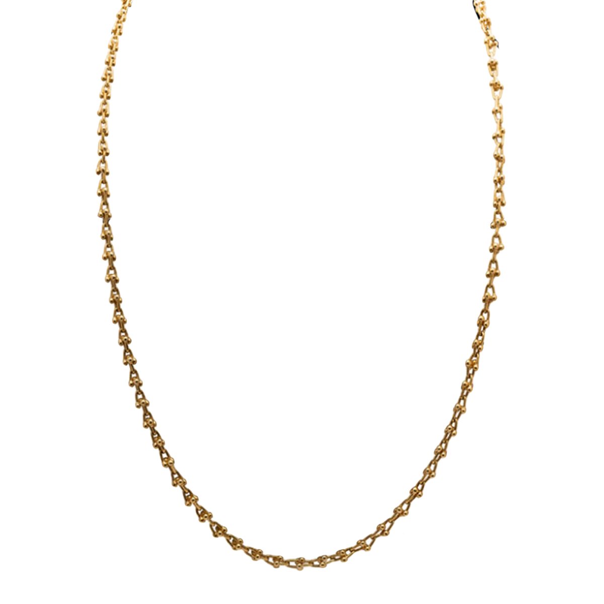 An incredible sautoir necklace by Bvlgari circa 1980s. this necklace showcases stirrup shaped motifs intertwined in 18k yellow gold with an impressive length of 33". The necklace has a total weight of 118 grams.