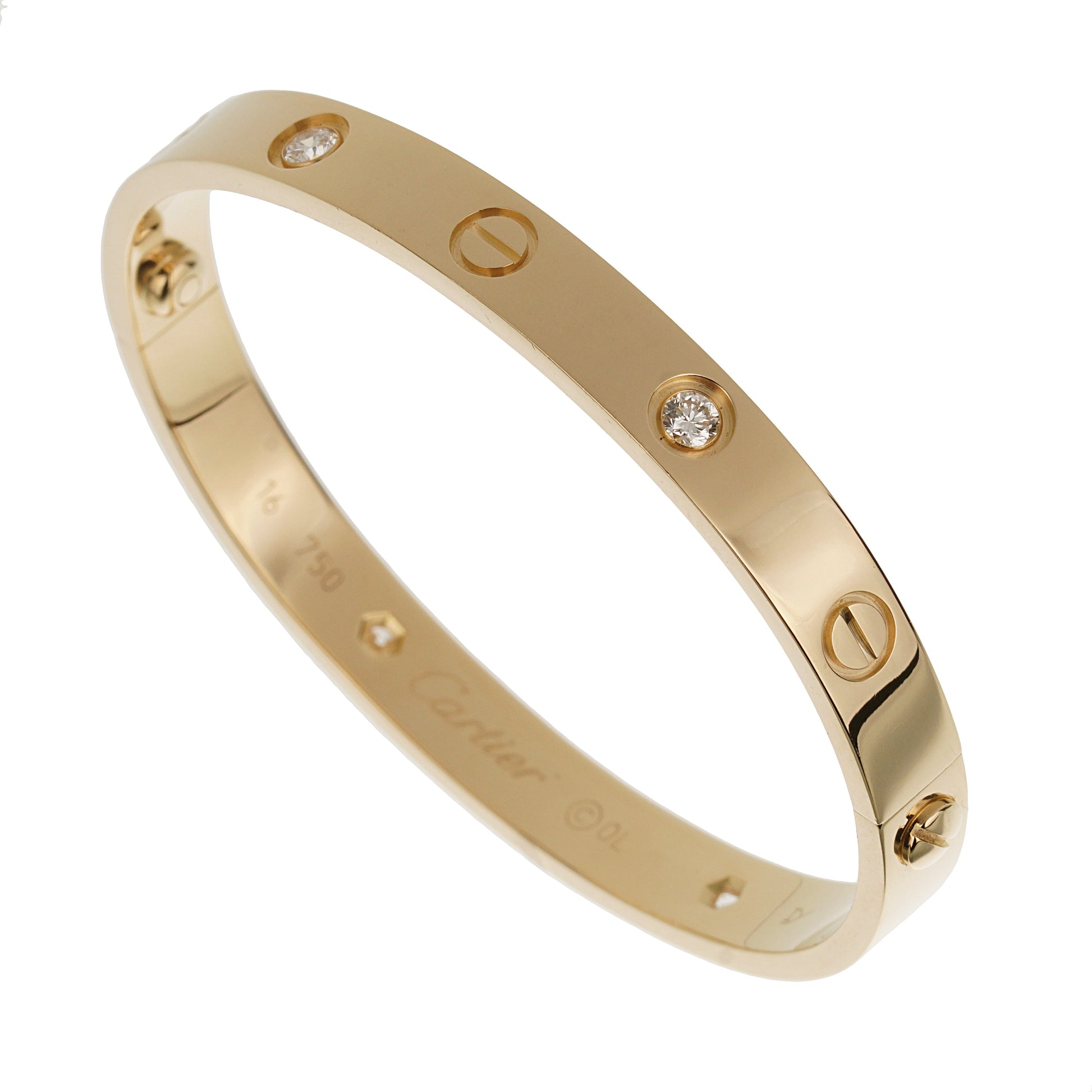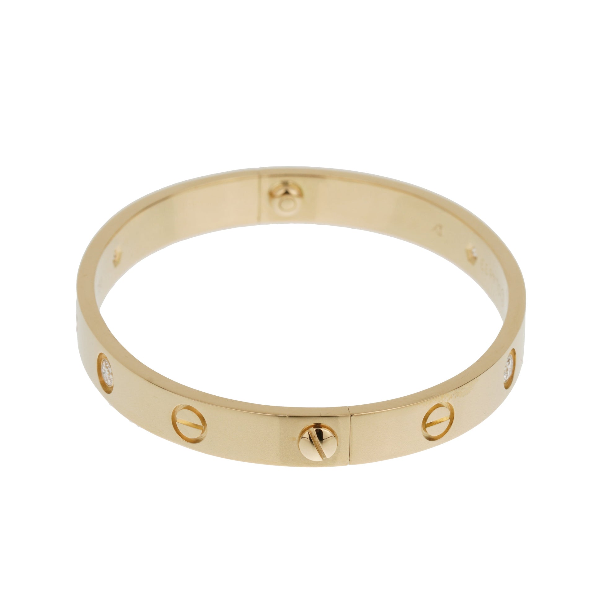 Cartier 4 Diamond 18k Yellow Gold Love Classic Bangle Bracelet Sz 16