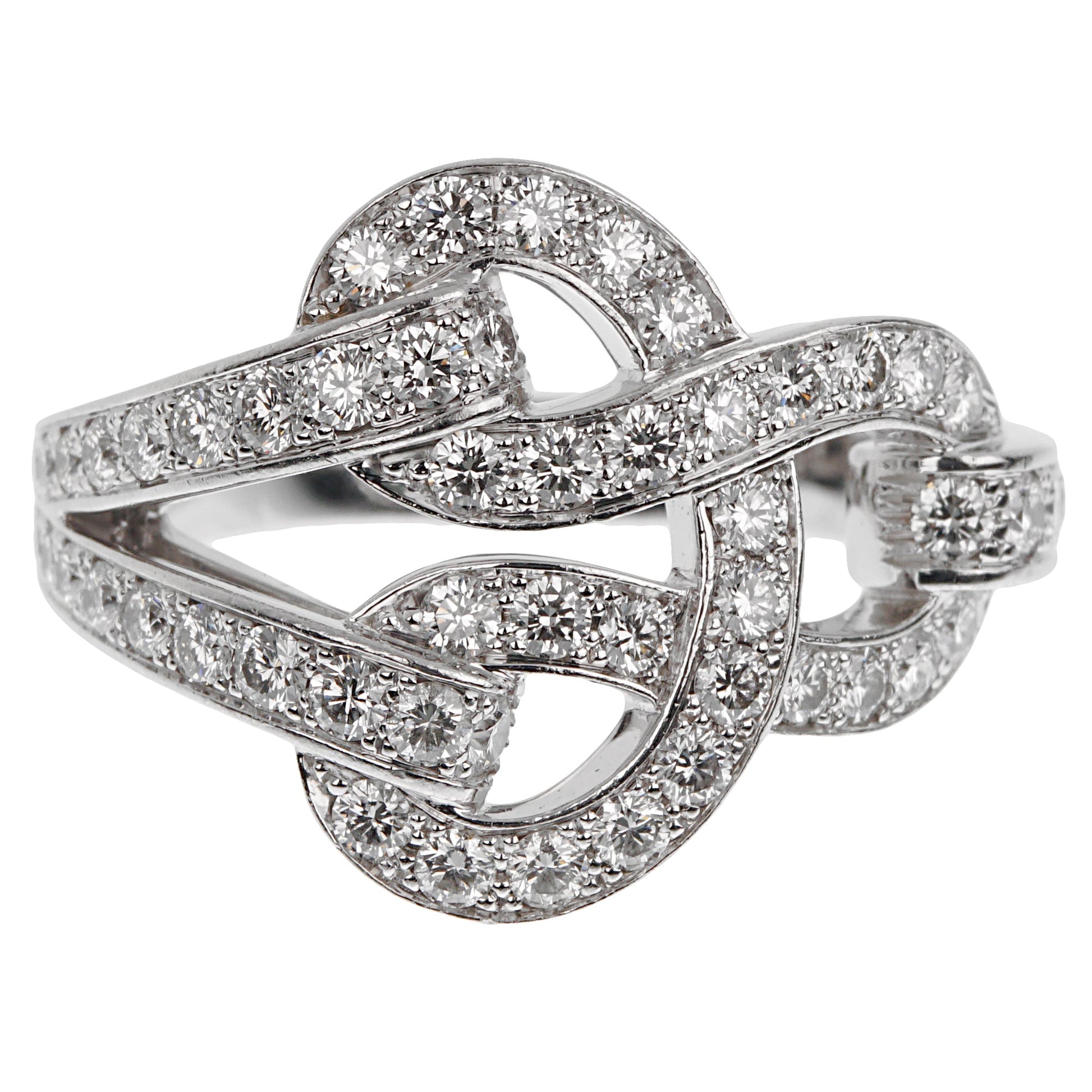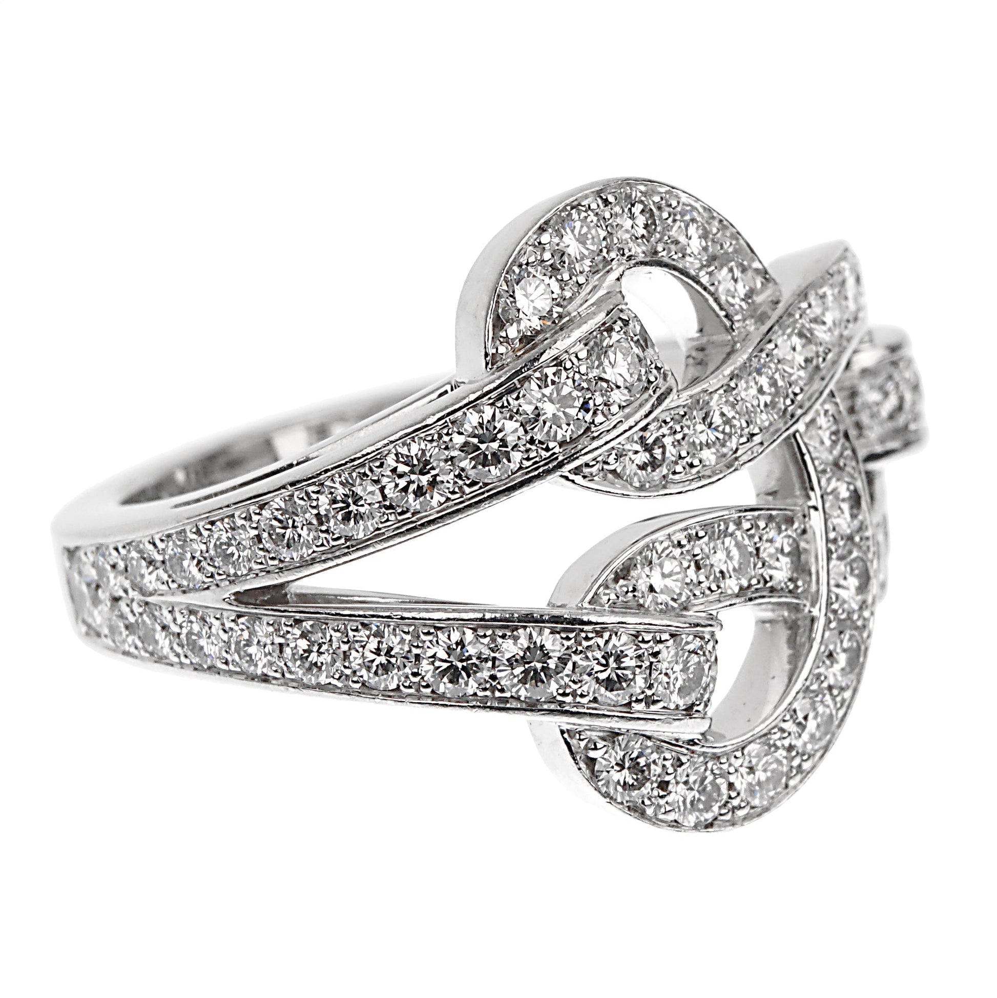 Cartier Agrafe Diamond 18k White Gold Cocktail Ring Sz 5 1/2