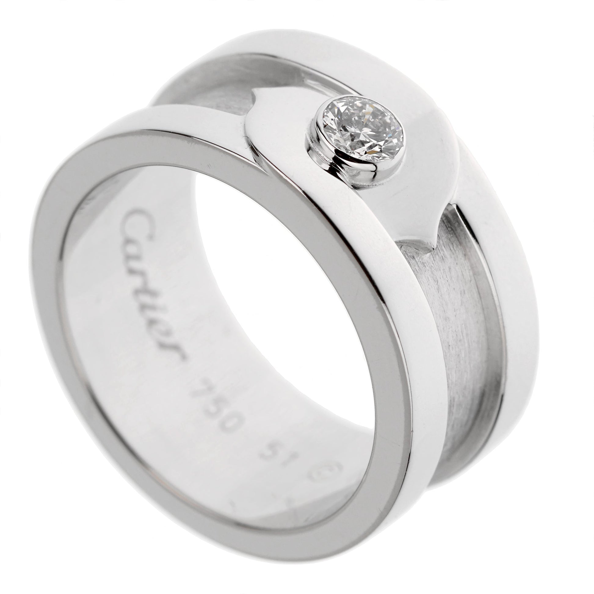 Cartier's renowned craftsmanship is evident in every detail of this ring, from the precise setting of the diamond to the meticulous finishing of the white gold. Each element is flawlessly executed, reflecting Cartier's commitment to excellence and creating a piece that will be treasured for a lifetime.