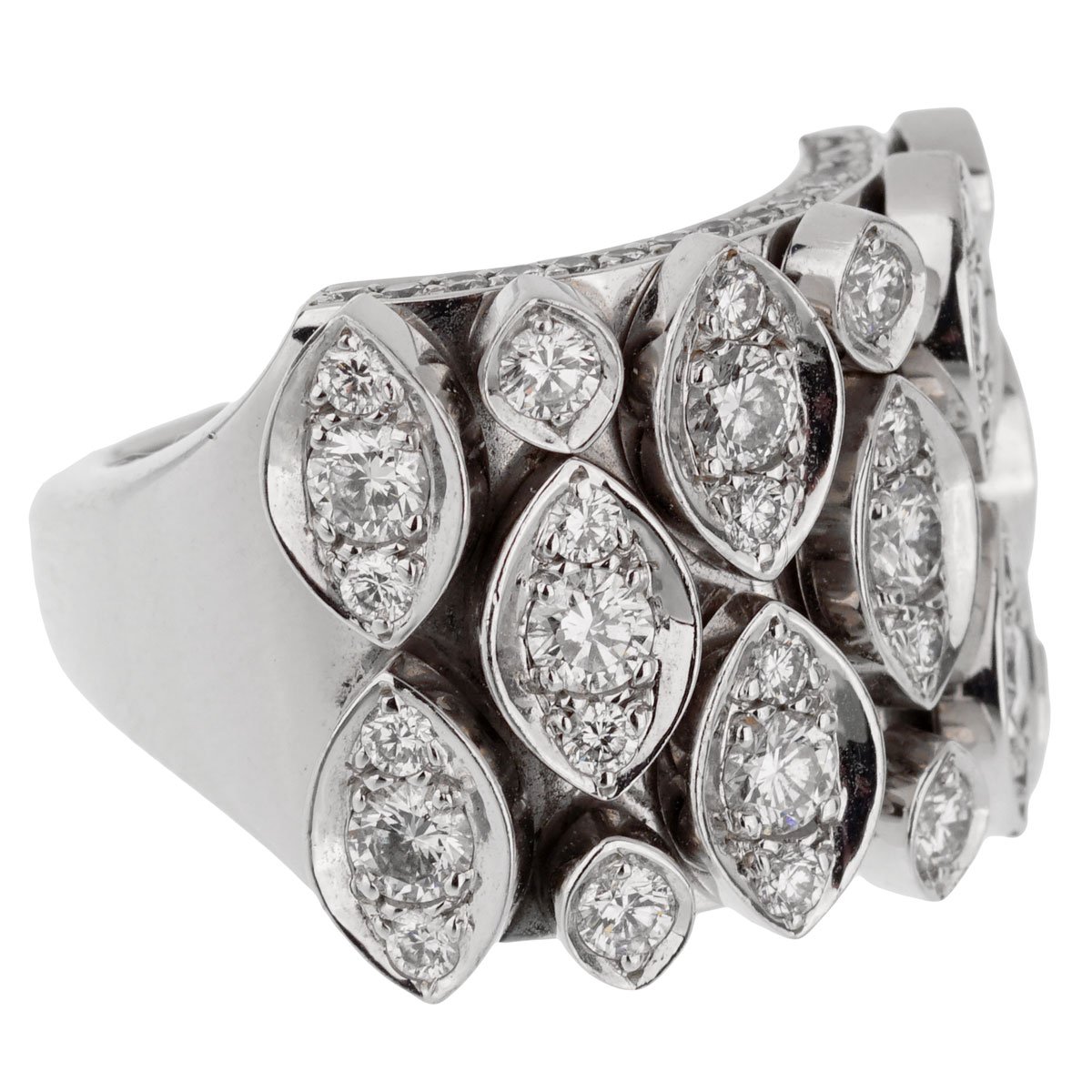 An incredible Cartier Diadea diamond ring in 18k white gold adorned with appx 1.5ct of the finest Cartier round brilliant cut diamonds. The ring measures a size 5 1/2 and can be resized.