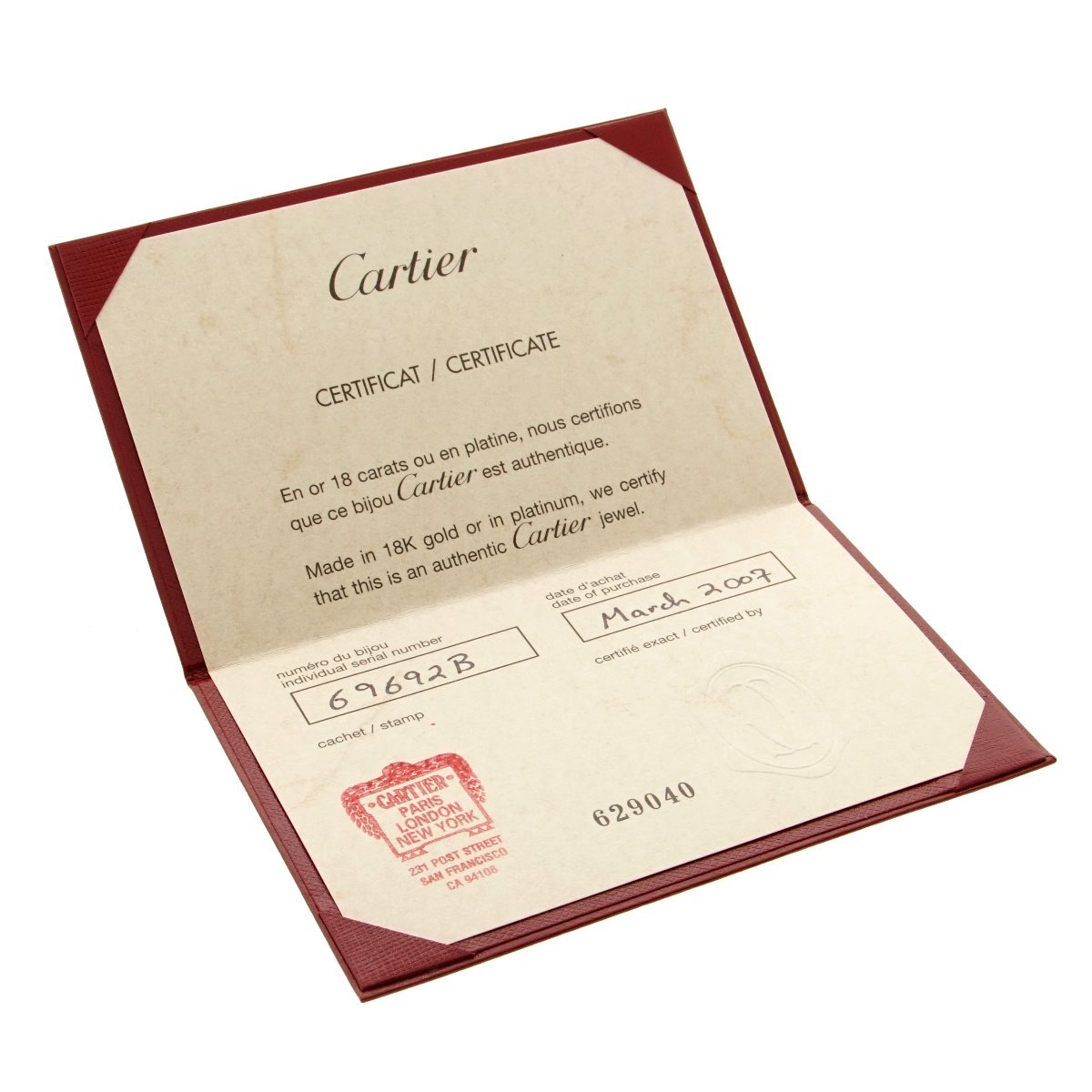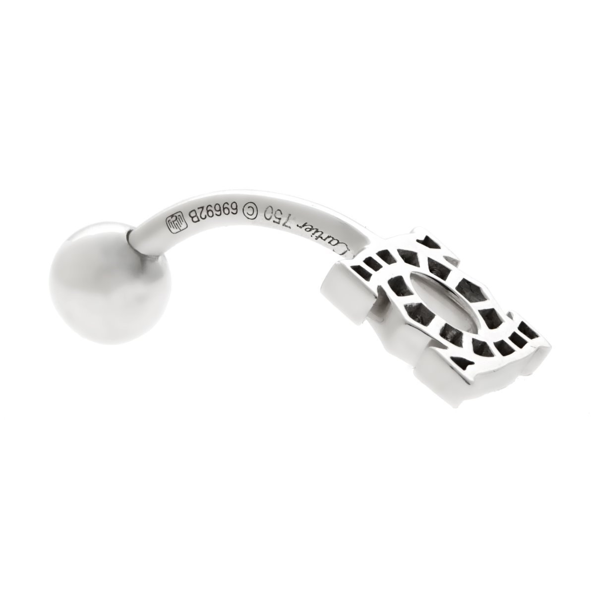 A chic authentic and highly collectible Cartier belly button diamond ring featuring the iconic Double C motif set with the finest Cartier round brilliant cut diamonds in 18k white gold.