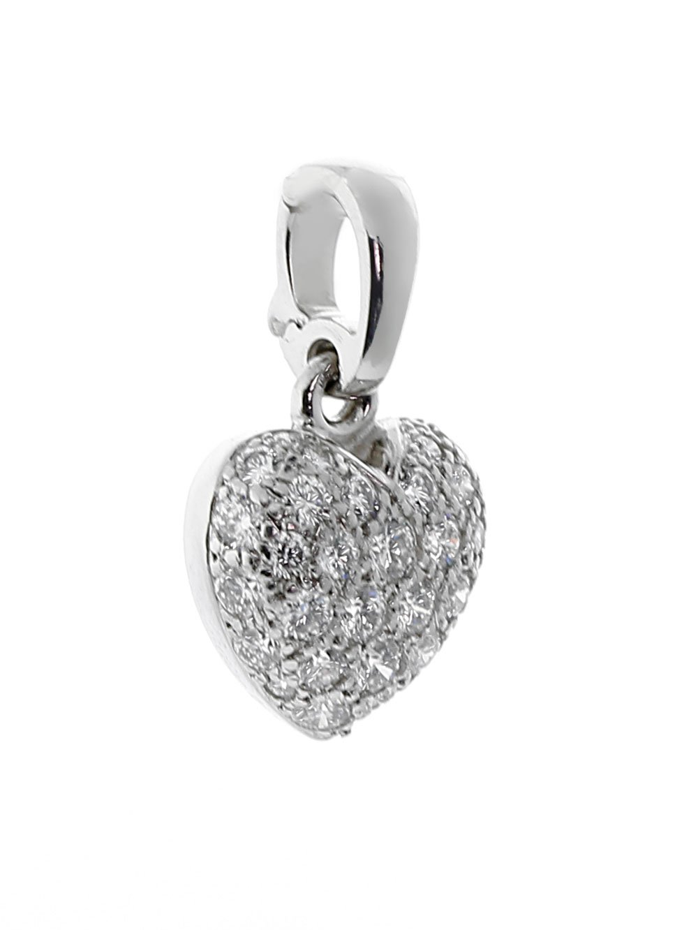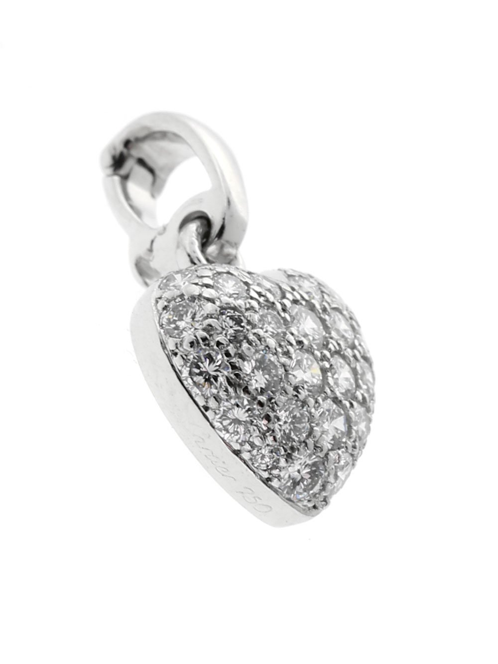 Necklace pendants are classic jewelry pieces that never seem to go out of style. With this Cartier Puffed Heart Pendant, you'll have an accessory designed by a jewelry company that knows how to produce quality. The pendant is made from white gold and diamonds to give you the sparkle that you deserve. Cartier's artisans meticulously select premium-grade diamonds for the company's jewelry. The jewelry maker also uses superior metals to ensure the long-lasting nature of its accessories. To develop an adornment that twinkles from every angle, the jewelry company's artisans painstakingly positioned each of the pendant's diamonds. This diamond pendant from Cartier brings a touch of modernity to the classic heart design.