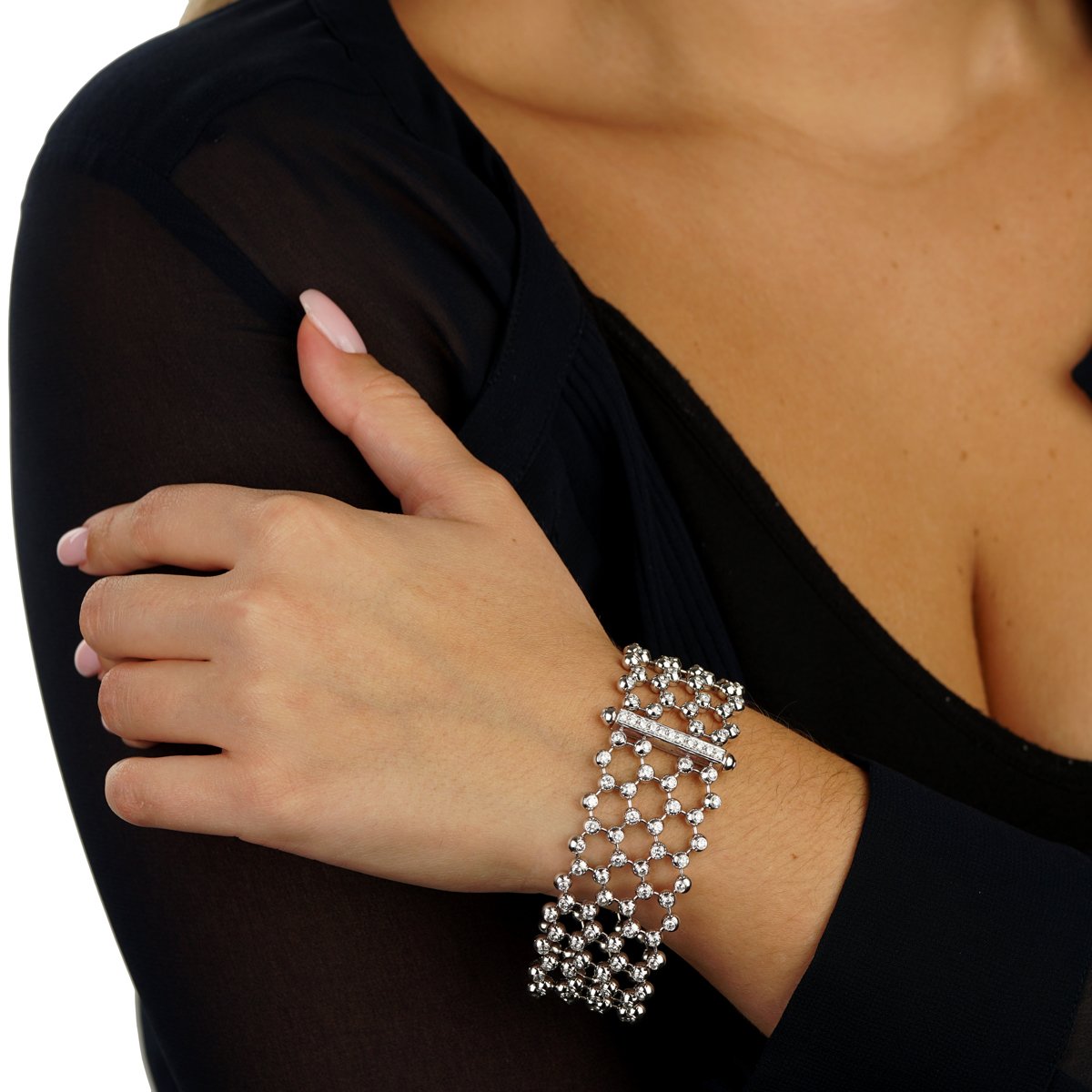 Crafted in 18k white gold, the Cartier Diamond Tennis Multistrand Bracelet boasts an extraordinary design that merges simplicity with grandeur. It features multiple strands, each delicately strung with an impeccable line of diamonds, designed to cascade gracefully around the wrist. The tennis bracelet concept, known for its continuous line of identical diamonds, is elevated by Cartier’s visionary approach of adding multiple strands, creating an effect of fluidity and movement.