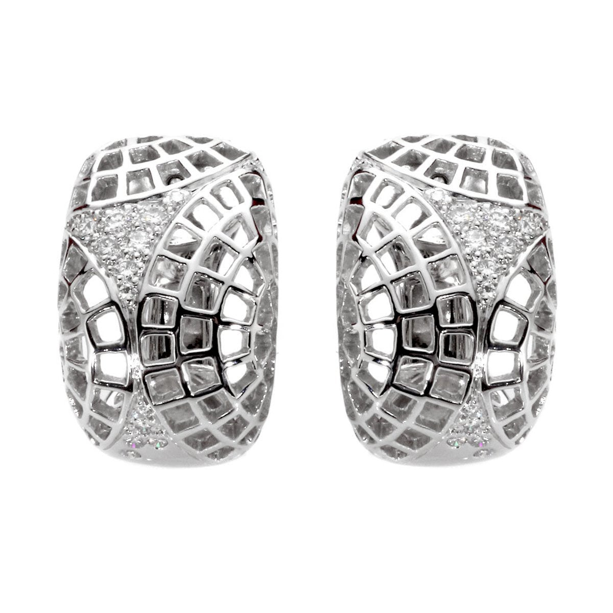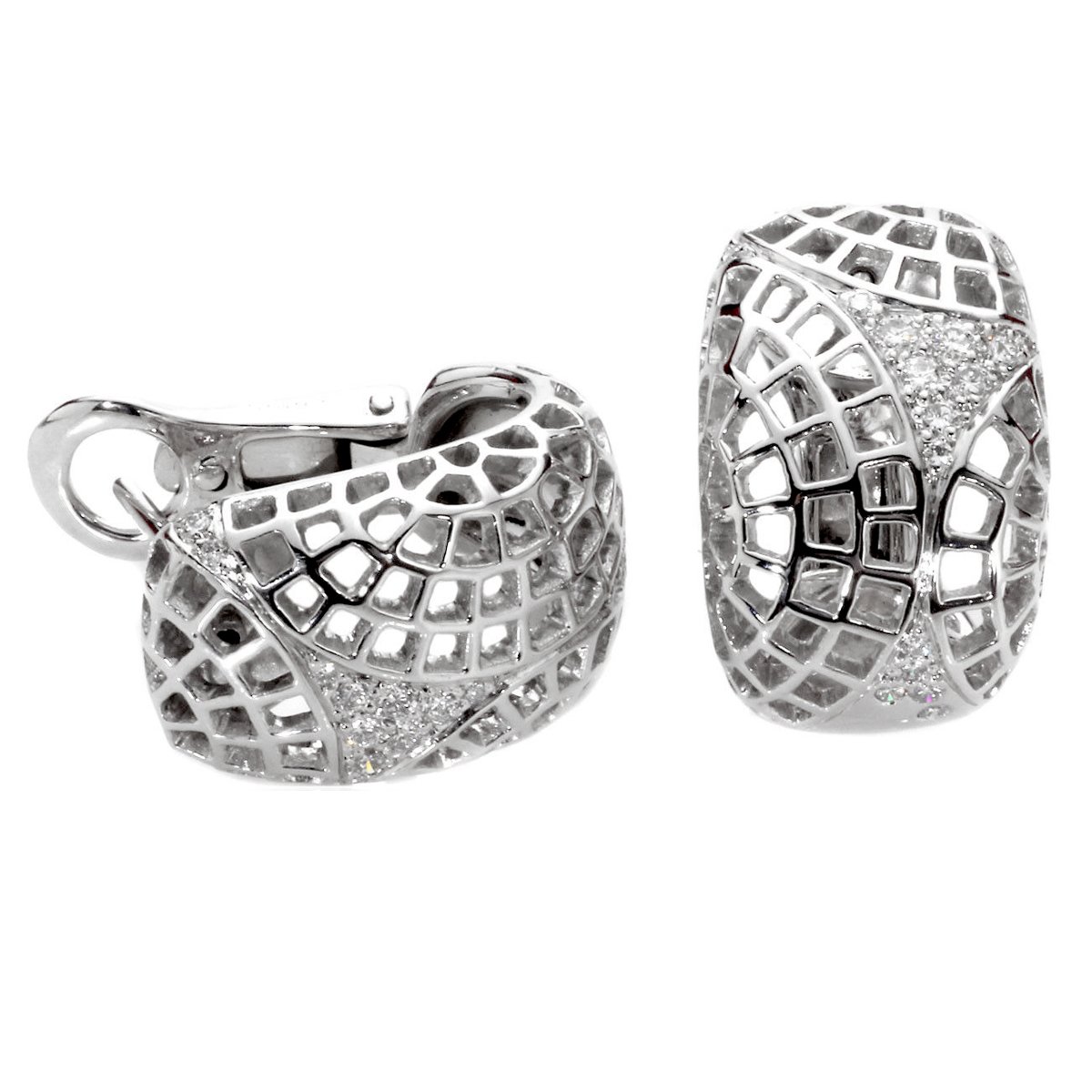 The world-renowned Parisian jewelers at Cartier understand that crafting truly exquisite earrings isn't a matter of size, but of radiance - and these 18k white gold diamond earrings are a perfect illustration of that long-standing fashion principle. Set with round brilliant cut diamonds amidst a sensual mosaic pattern, these earrings are undeniably alluring to the eye, but compact enough to qualify as "cute" at the same time.