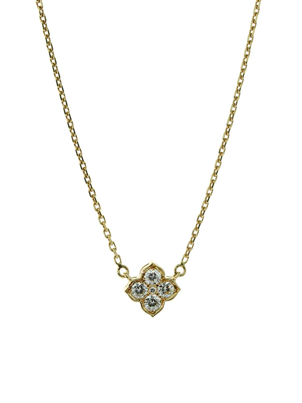 Here's another example of why Cartier is still one of the most sought after jewelry companies on the planet. This flower necklace is made from yellow gold and has five beautiful diamonds. The timeless look and styling in the design is classic Cartier and would make a beautiful gift for that special someone in your life.
