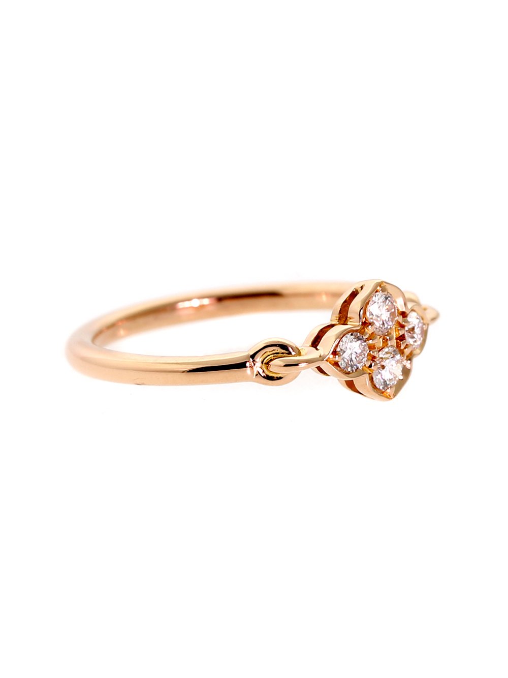 A classic Cartier flower diamond ring adorned with 4 round brilliant cut diamonds set in 18k rose gold.