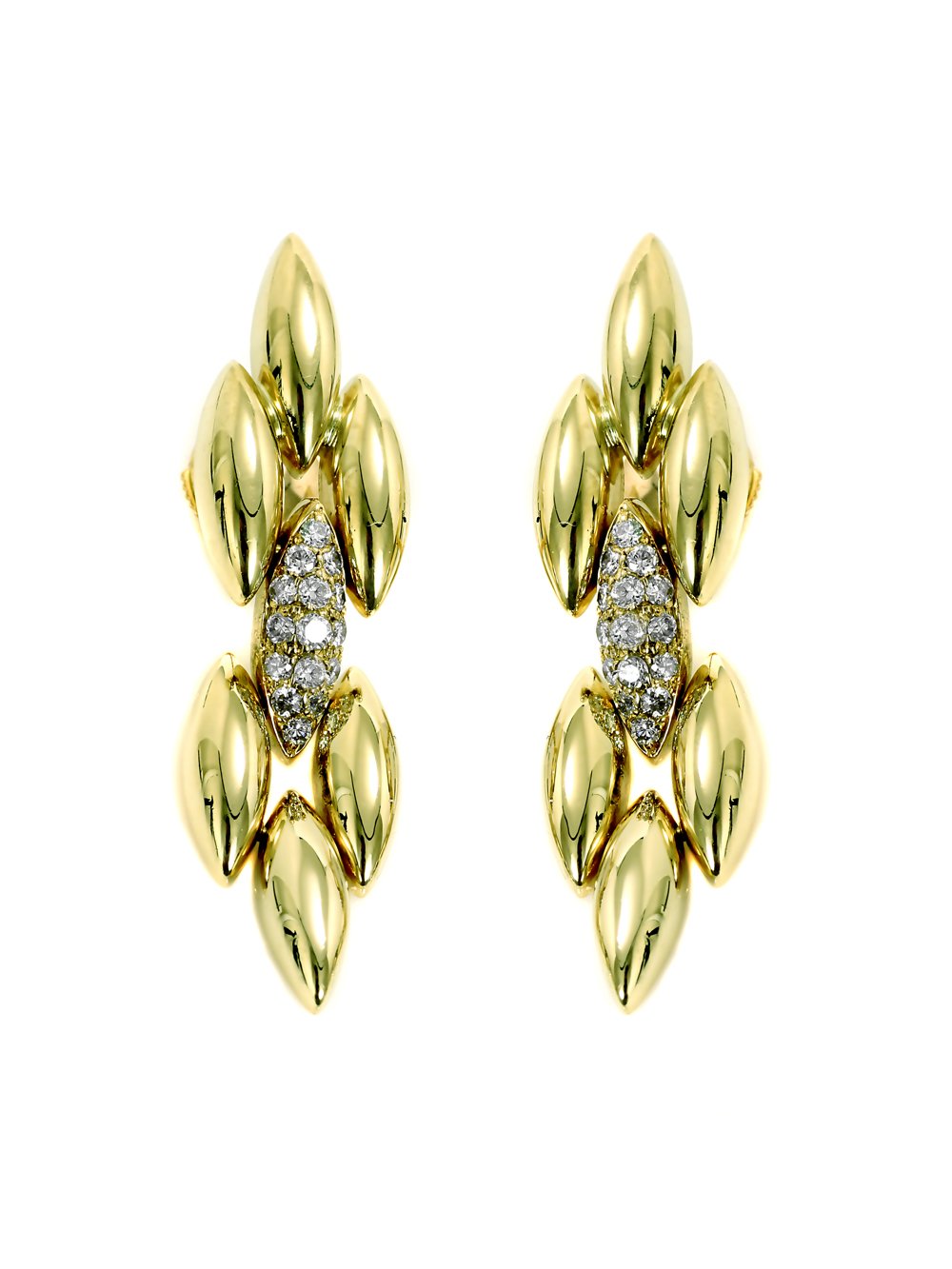 A fabulous pair of Cartier drop earrings set with 30 of the finest Cartier round brilliant cut diamonds set in 18k yellow gold.