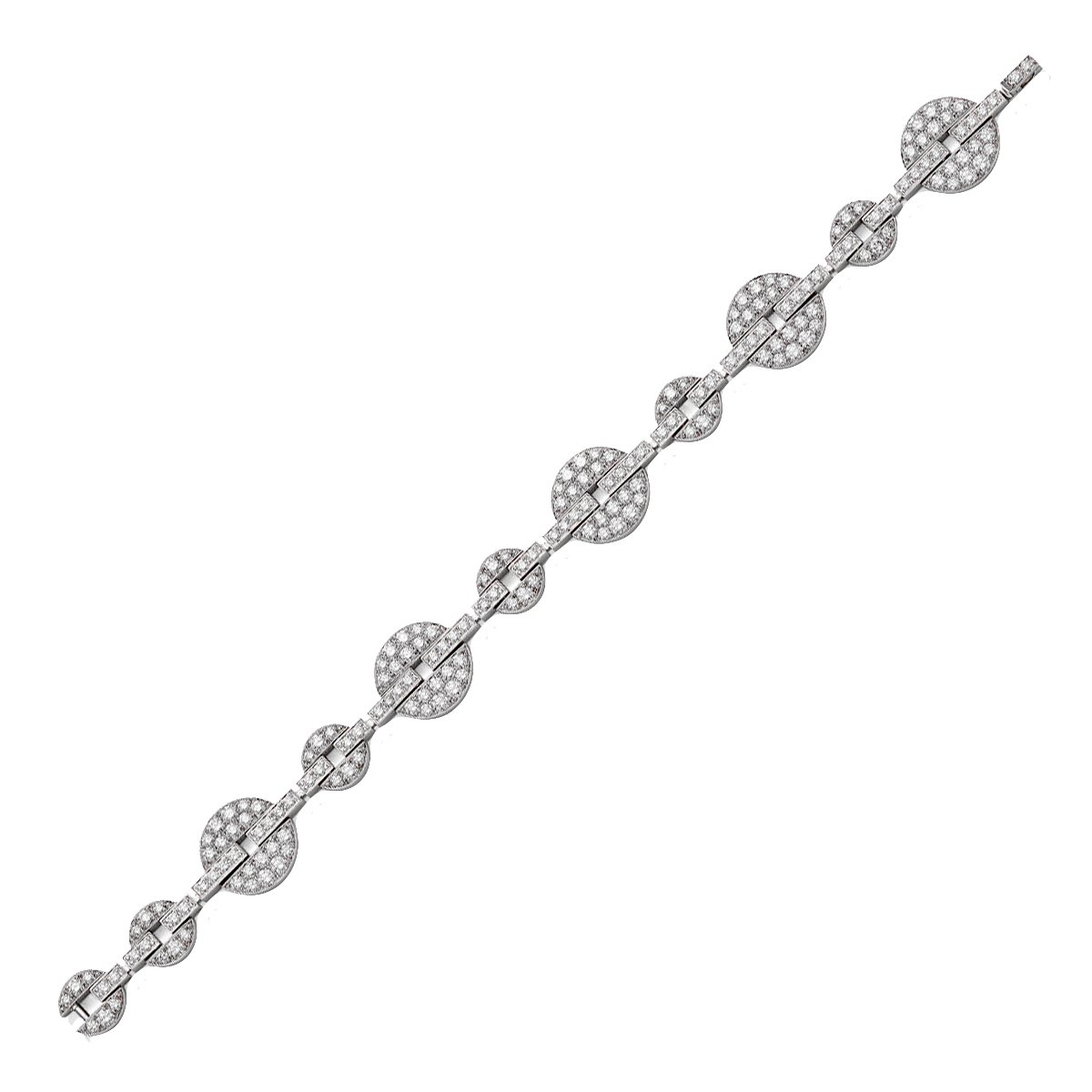 An iconic Cartier Himalia full diamond bracelet showcasing a round sphere shape set with 160 round brilliant cut diamonds with a total diamond carat weight of approx. 5.13ct. In order to maintain the continuous pattern of the bracelet links, the bracelet has a concealed clasp.
