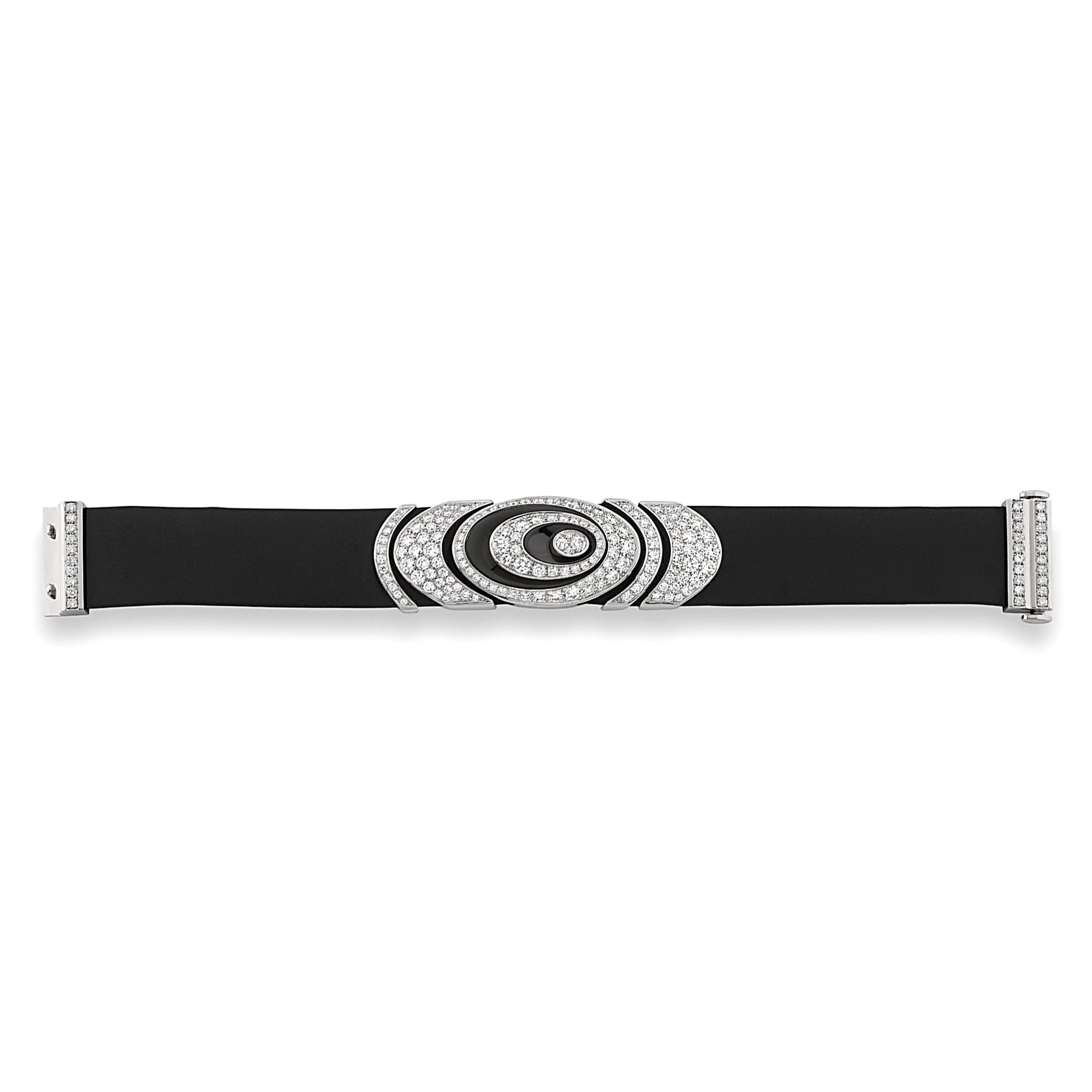 Accenting the brilliance of the diamonds is the deep, rich enamel that complements the white gold with a touch of mystery. The enamel work demonstrates Cartier's meticulous attention to detail and the high standards of its artisans. The combination of enamel and diamond creates a striking contrast that is both bold and classic, embodying the essence of timeless style.
