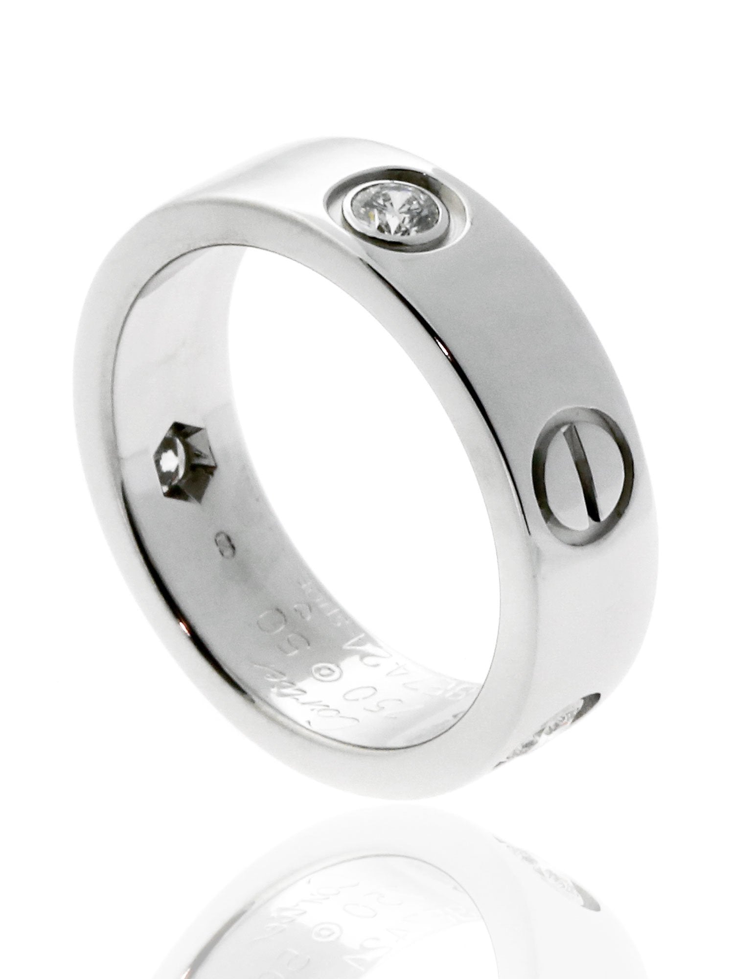Cartier Love 3 Diamond Ring in 18k White Gold Sz 50