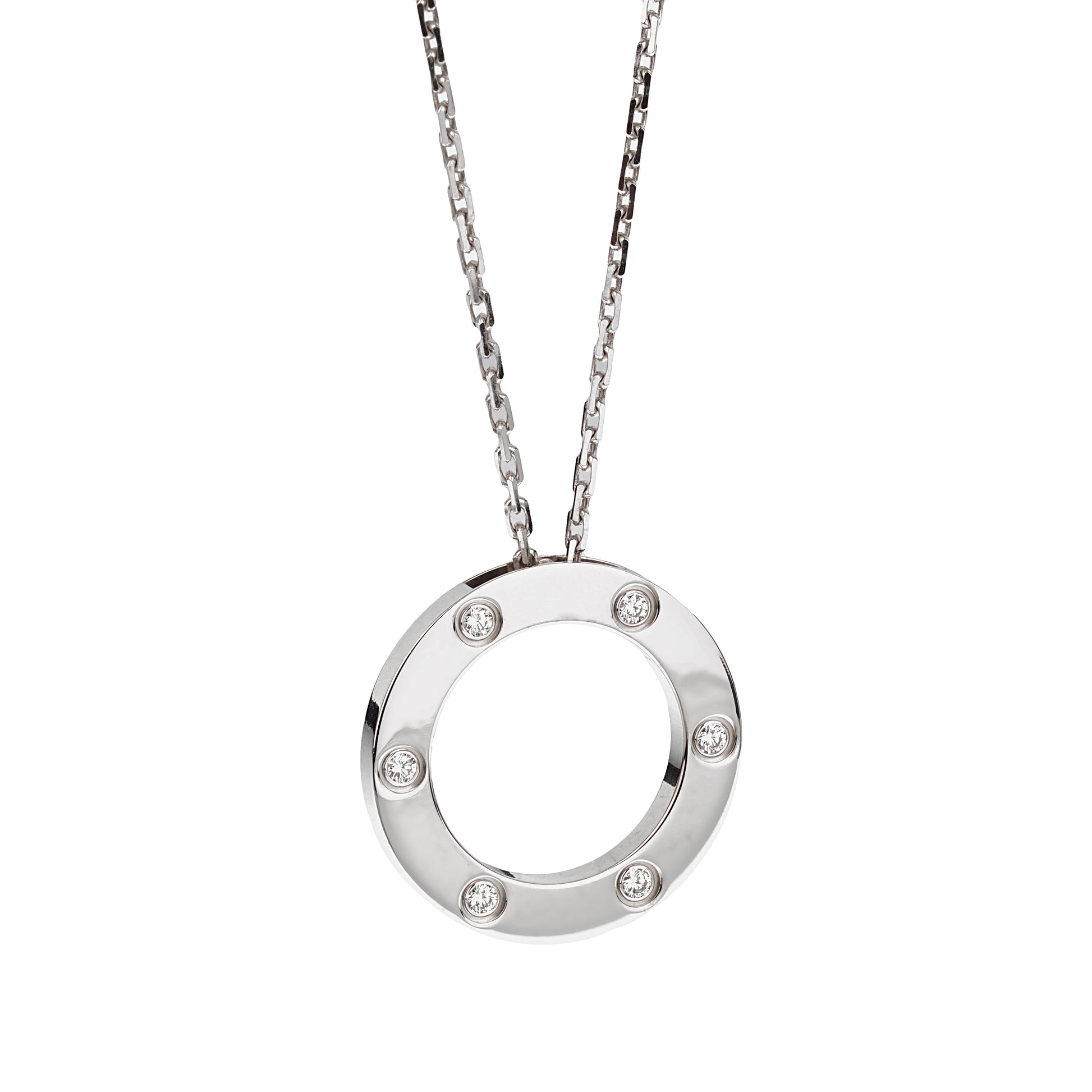 Cartier Love 6 Diamond 18k White Gold Pendant Necklace