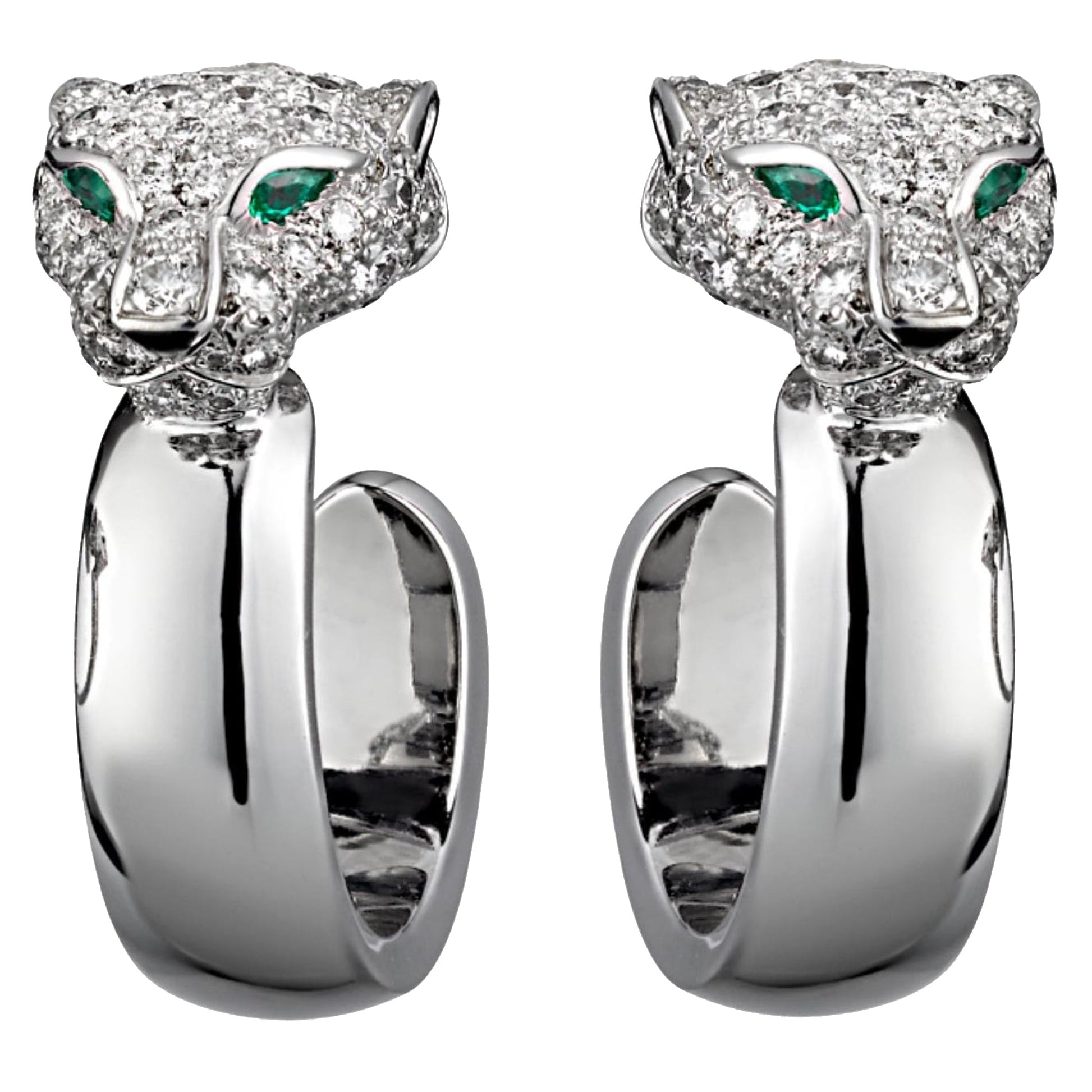 Cartier Panthere Diamond Emerald White Gold Hoop Earrings