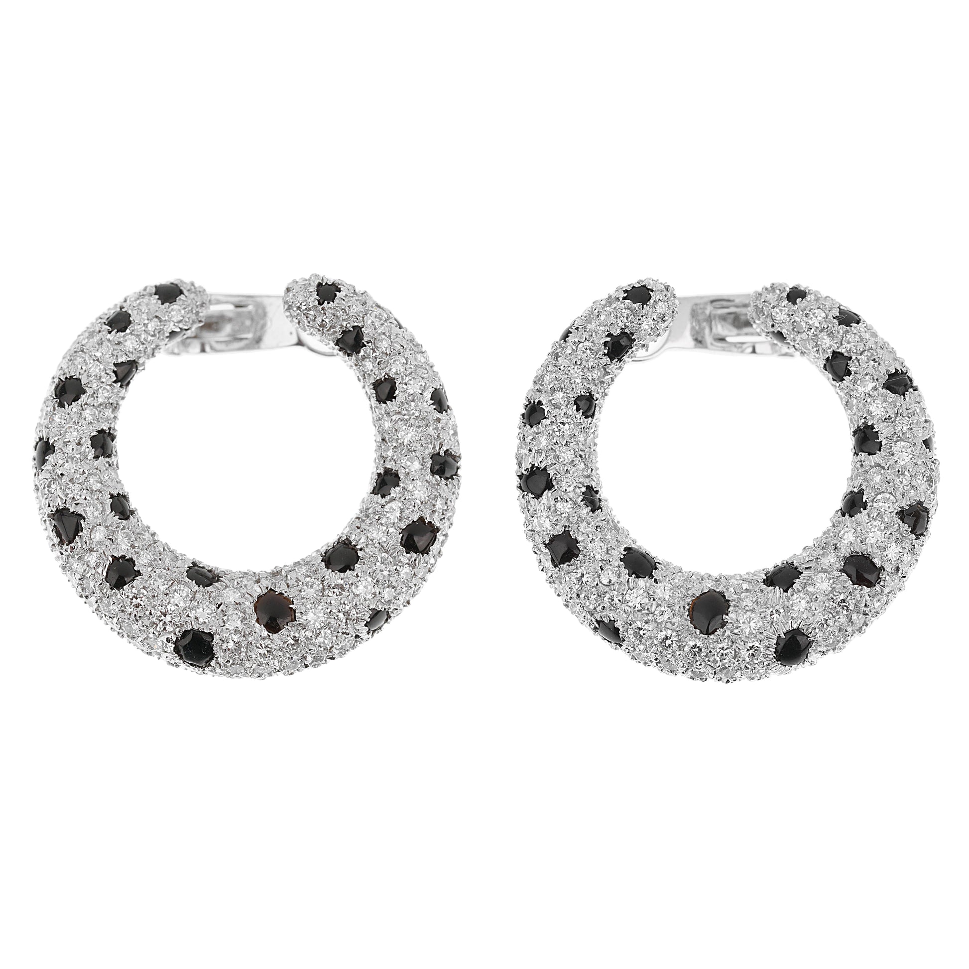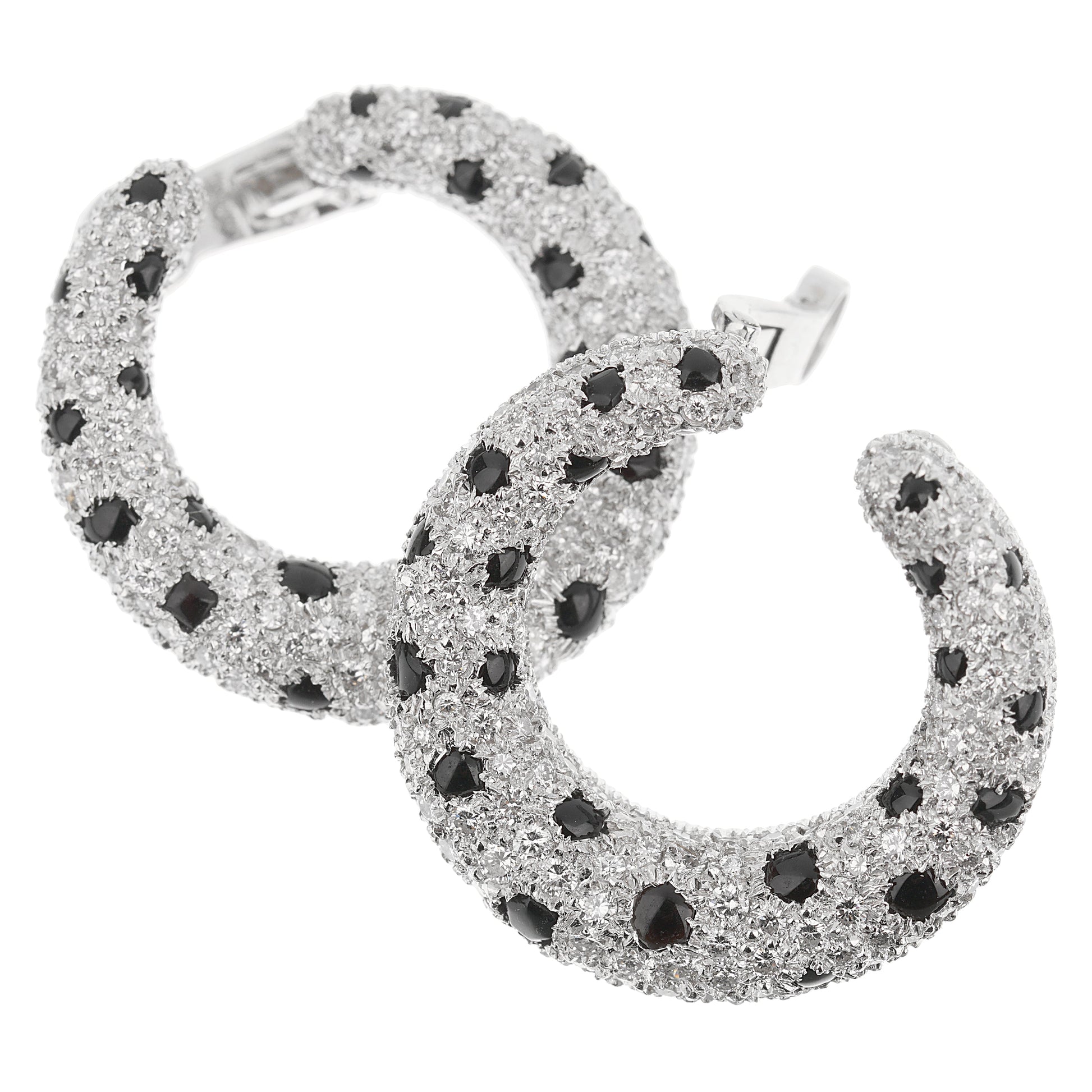 Cartier Panthere Onyx Diamond Platinum Hoop Earrings
