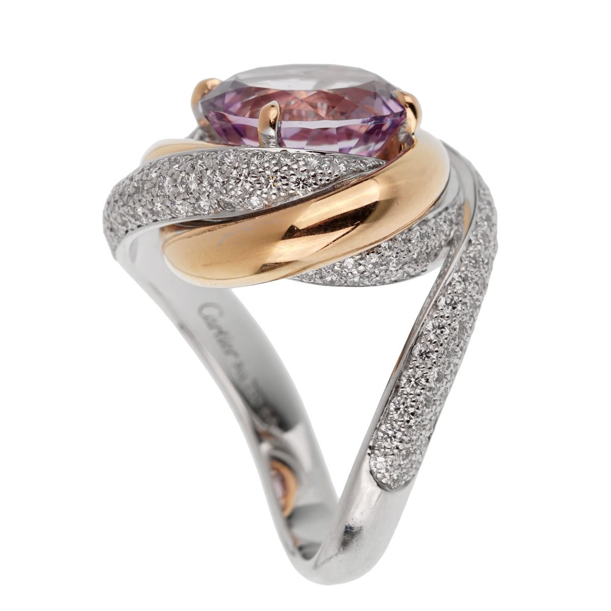 Cartier Trinity Ruban Amethyst Diamond White Gold Ring