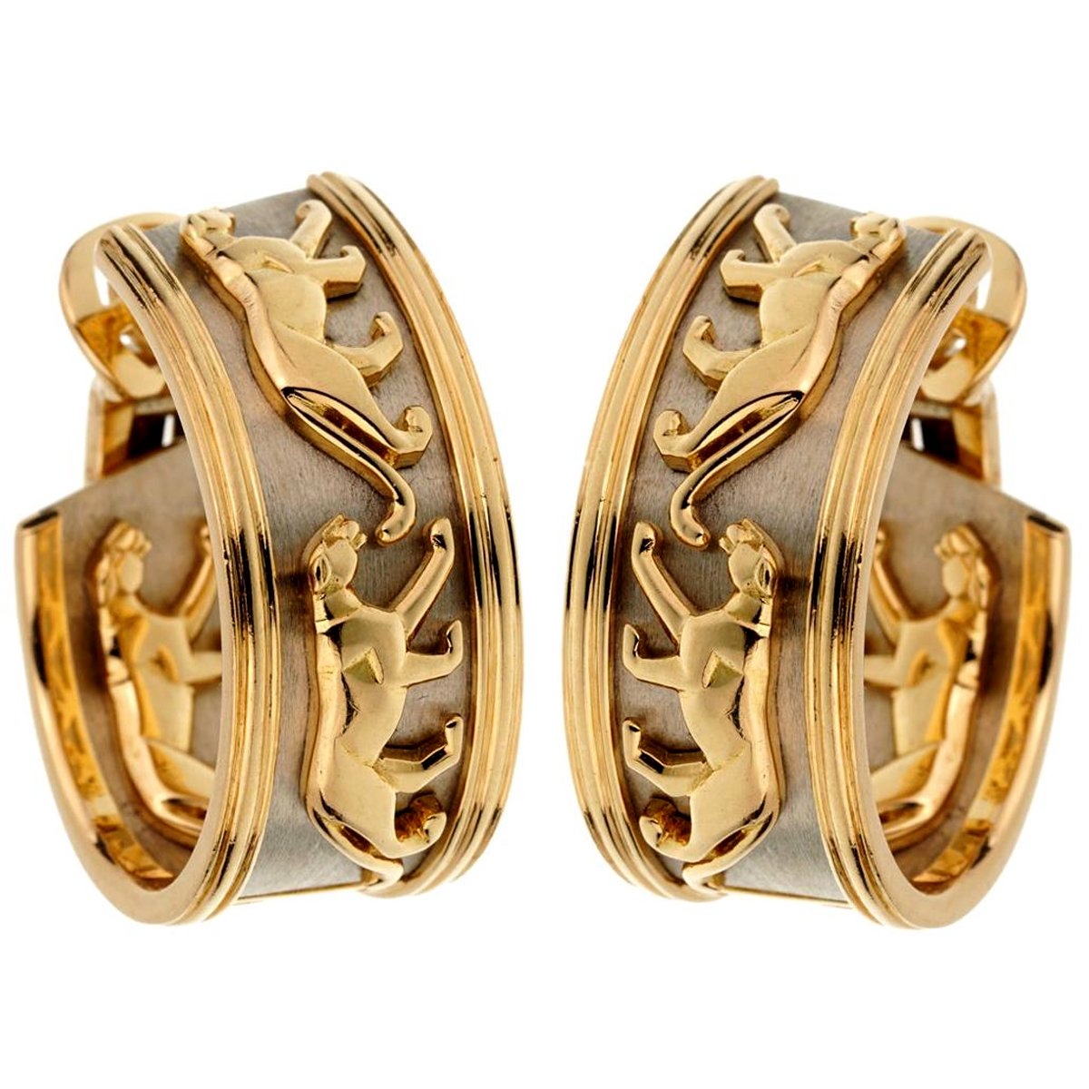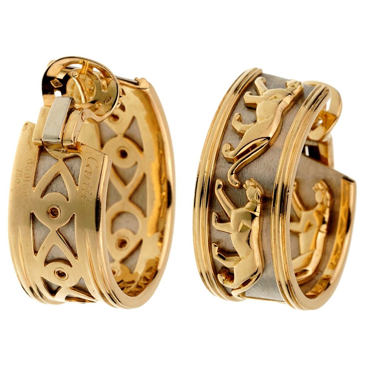 Cartier Vintage Panthere Yellow & White Gold Hoop Earrings