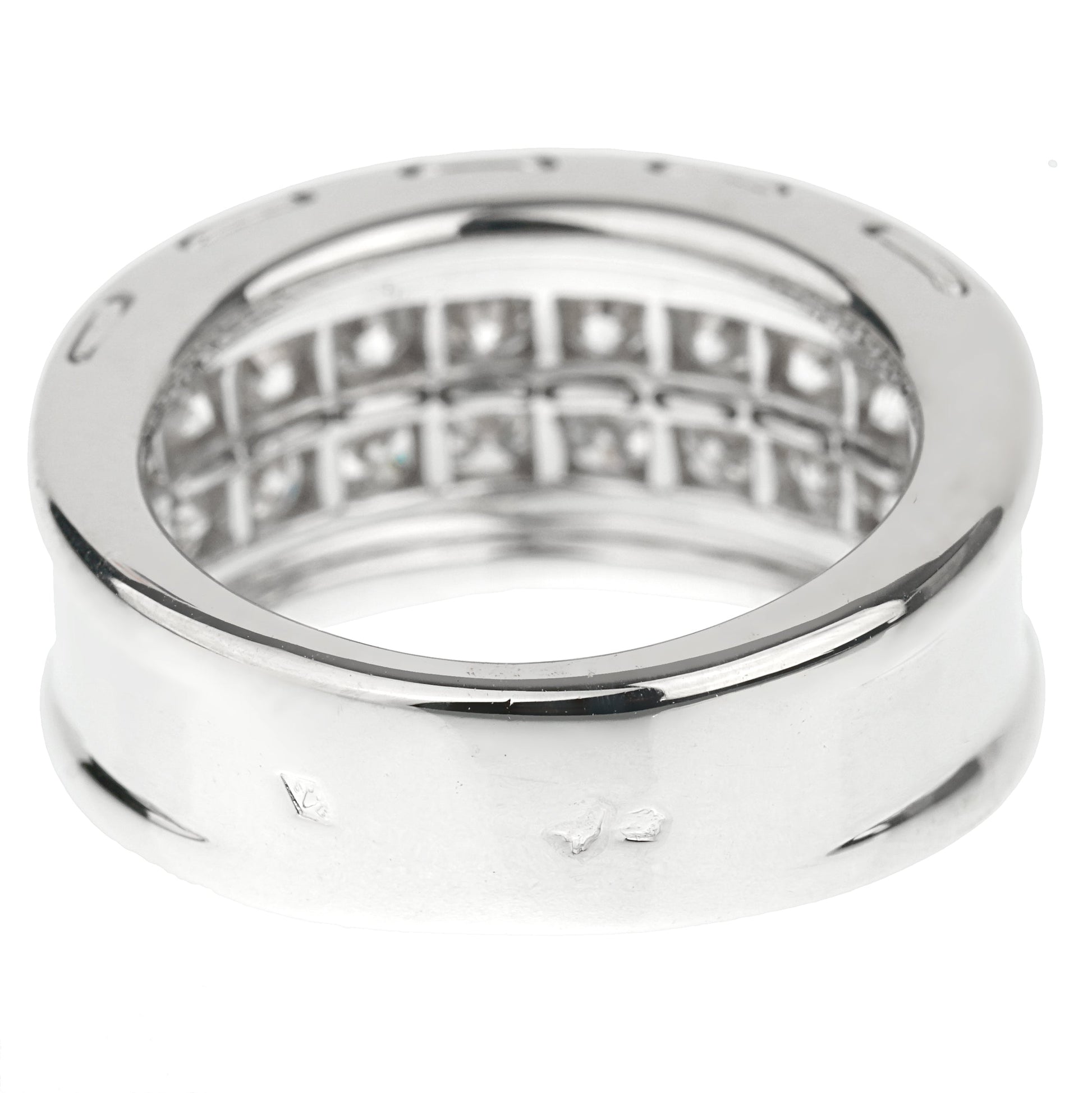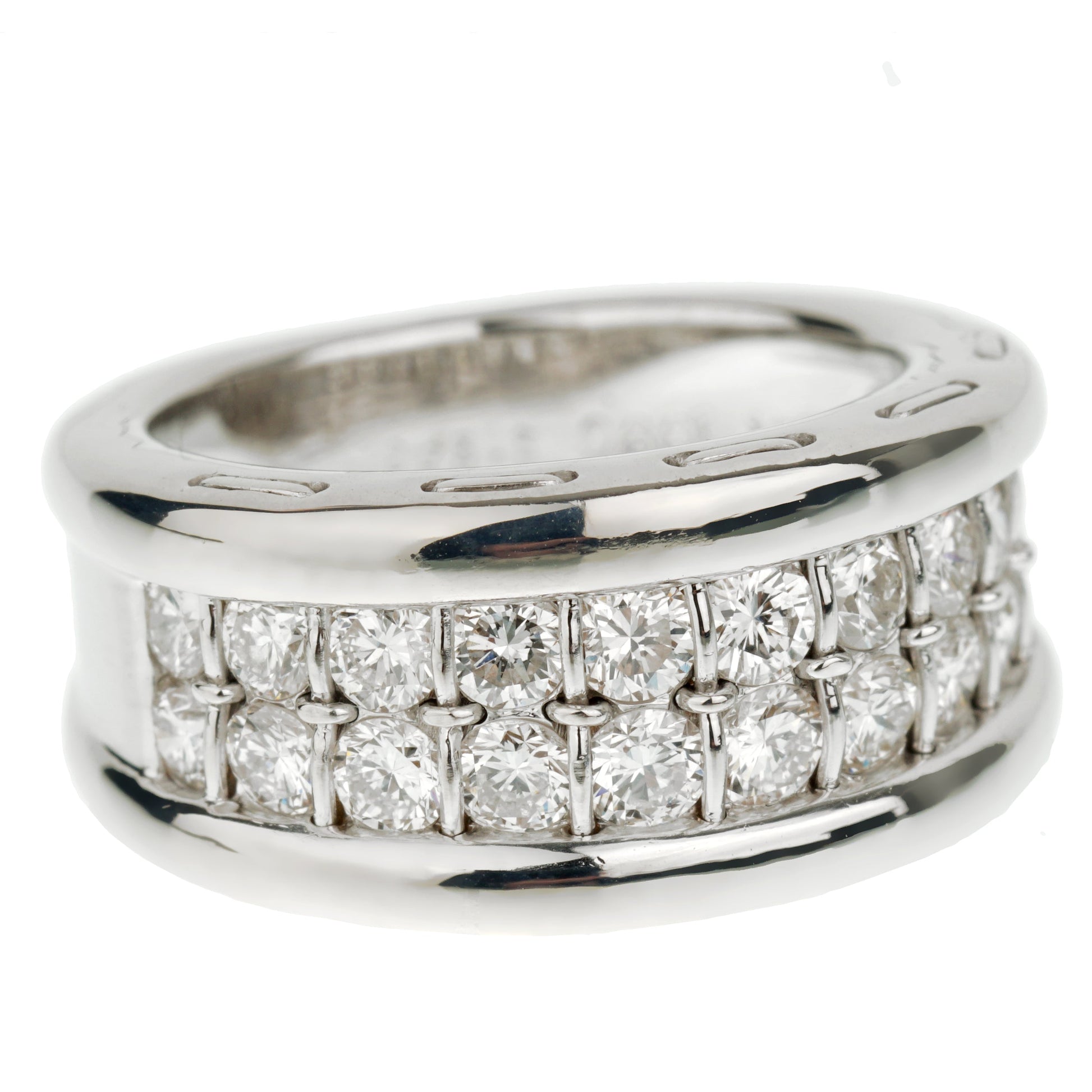 The two rows of brilliant-cut diamonds, hand-selected for their exceptional quality and radiance, are meticulously set within the white gold band. The diamonds sparkle with every movement, creating a mesmerizing display of light and brilliance that is sure to captivate and enchant.