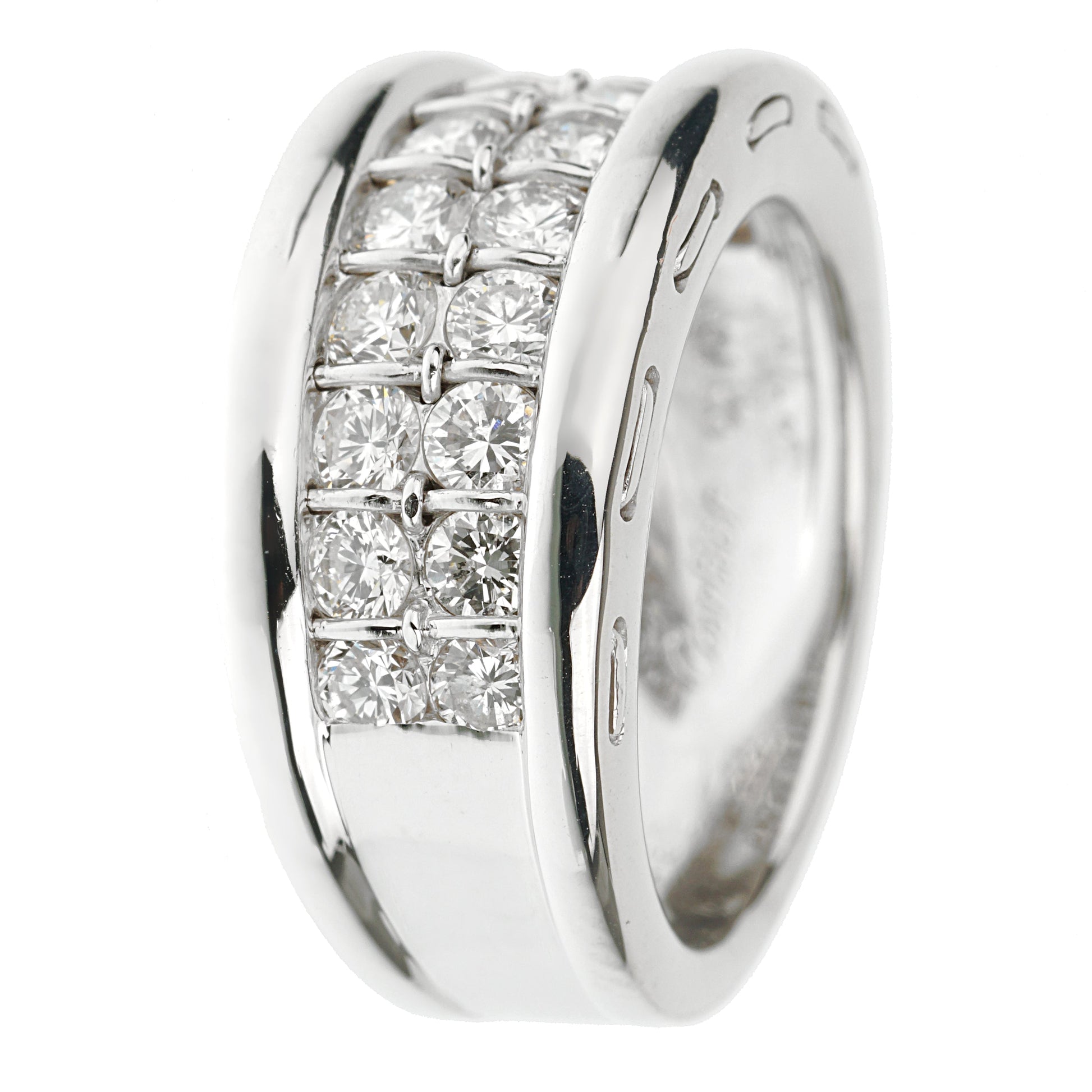 Expertly crafted from 18k white gold, the Cartier Vintage Diamond Band Ring is designed to capture the essence of sophistication and grace. The ring boasts a lustrous, polished finish that enhances the beauty of the gemstones and highlights the intricate details of the weave motif.