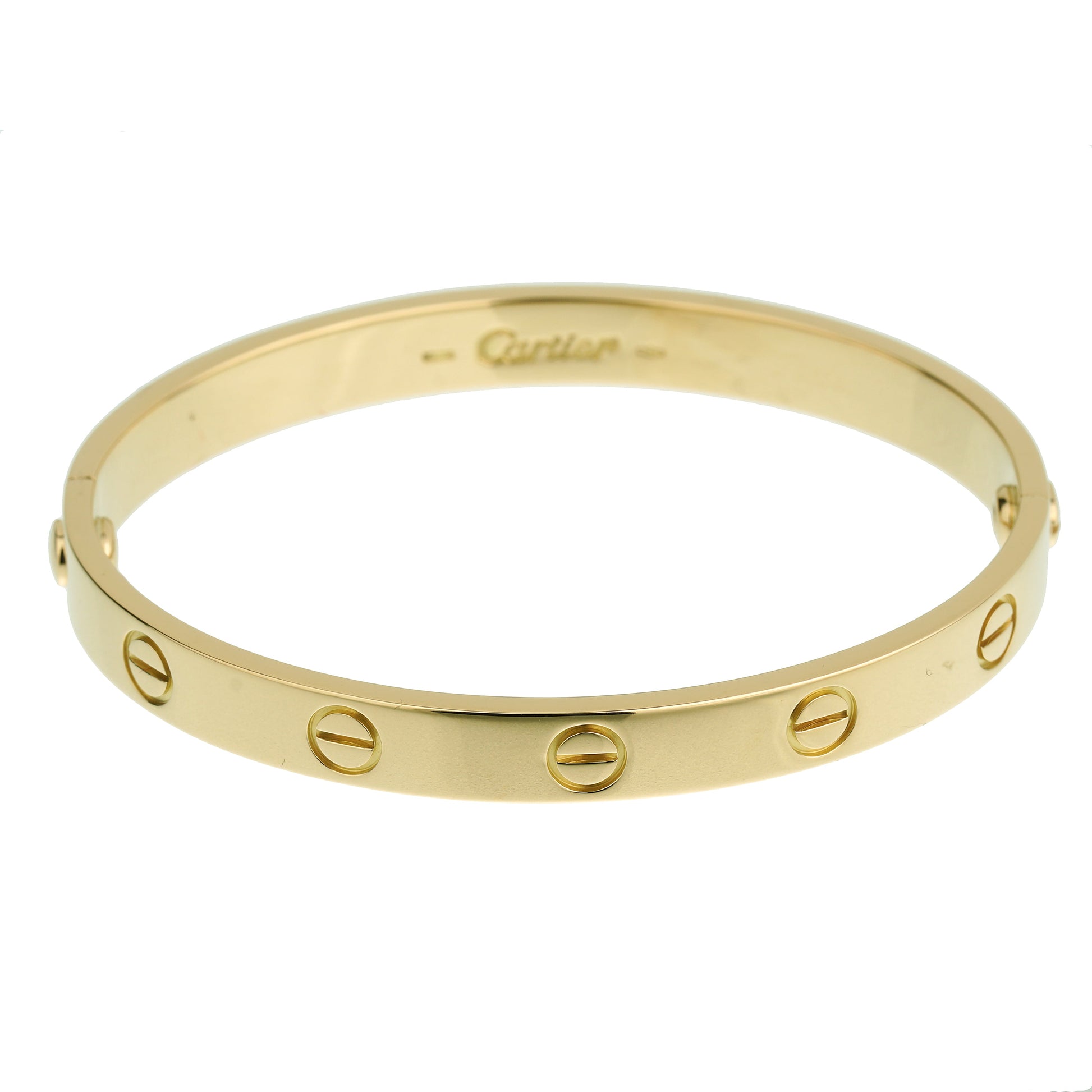 Indulge in the rich heritage of Cartier with this captivating Yellow Gold Love Bangle Bracelet, and let it serve as an enduring reminder of the love and affection that binds two hearts together.