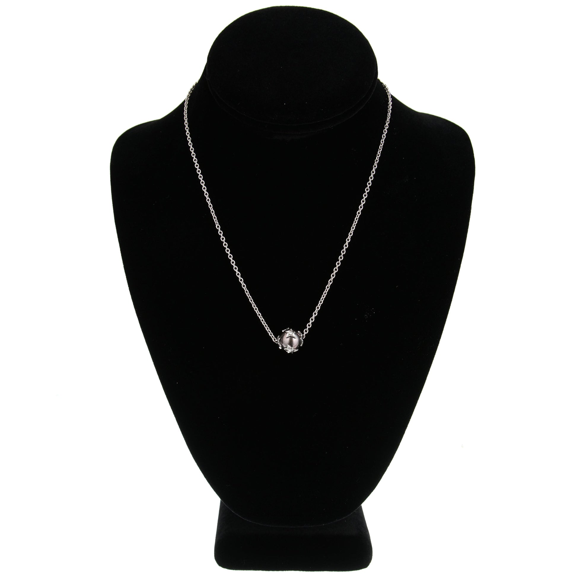 At 16 inches in length, this necklace gracefully rests close to the heart of its beholder, capturing gazes and evoking admiration. Crafted in the finest white gold, the necklace offers a shimmering canvas, complementing the cool undertones of the pearl and the fiery brilliance of the diamonds. The choice of white gold lends it a modern, yet timeless feel – making it an ideal match for both vintage lovers and contemporary fashionistas.