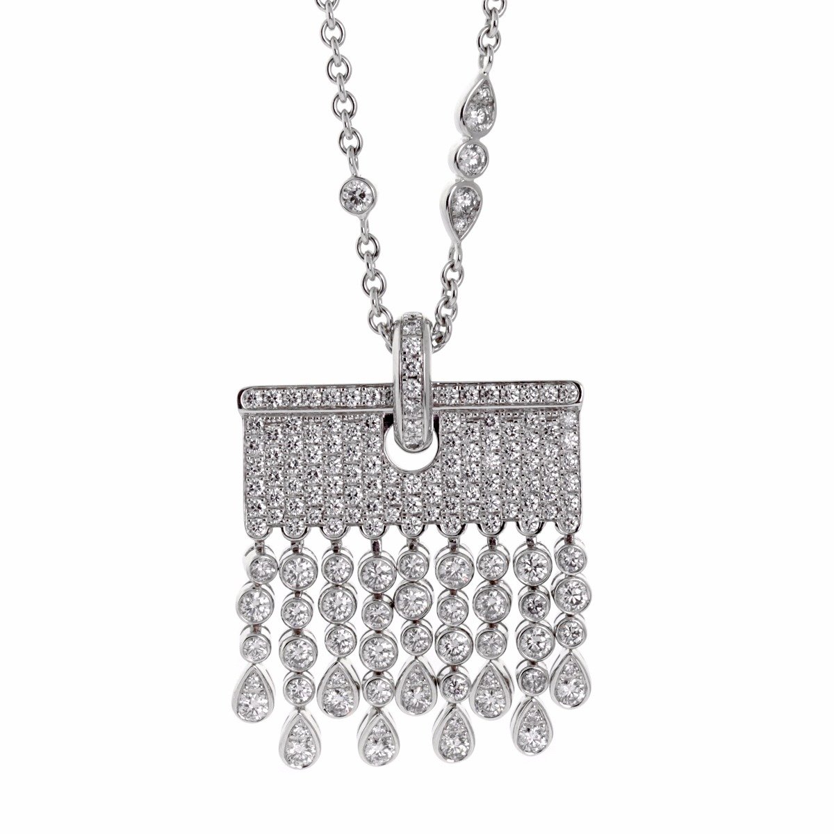 Chopard Diamond Tassel Drop 18k White Gold Sautoir Necklace