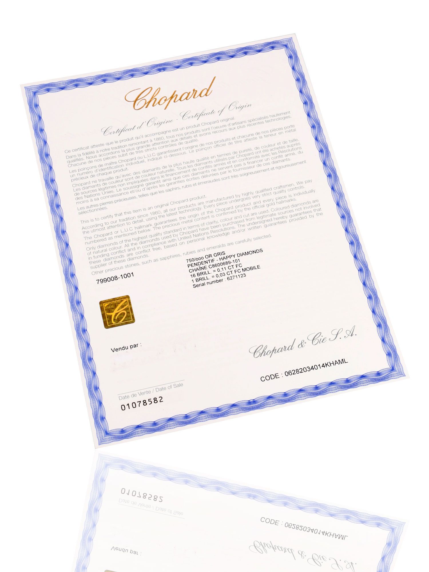 Love will be in the air every time you slip on this splendorous Necklace from Chopard's phenomenal Happy Diamonds collection. Made of 18k White Gold and boasting 17 Diamonds set into a heart-shaped Pendant, this is jewelry done right. Whether you're interested in a gift for your loved one or a proud statement of your own dedication to the ideals of love and romance, this Necklace is a fantastic choice.