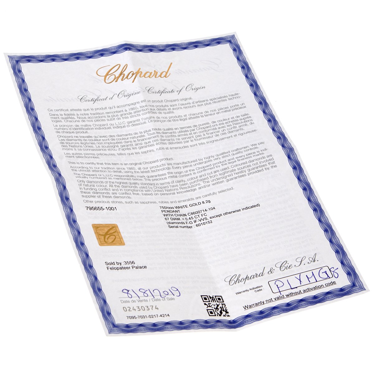 A fabulous Chopard diamond Eye pendant showcasing 67 of the finest round brilliant cut diamonds set in 18k white gold. The pendant is suspended by a 16" white gold Chopard cable necklace.