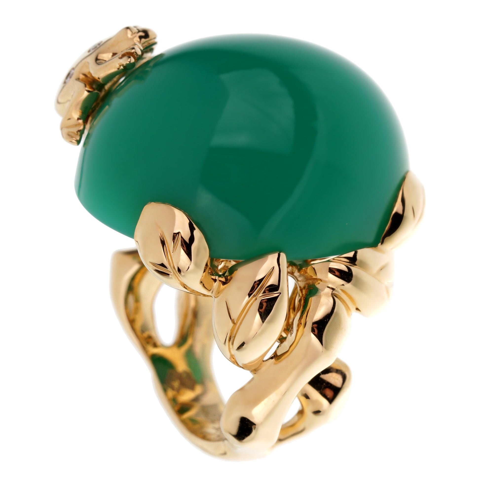 Dior Chrysoprase Diamond Yellow Gold Cocktail Ring