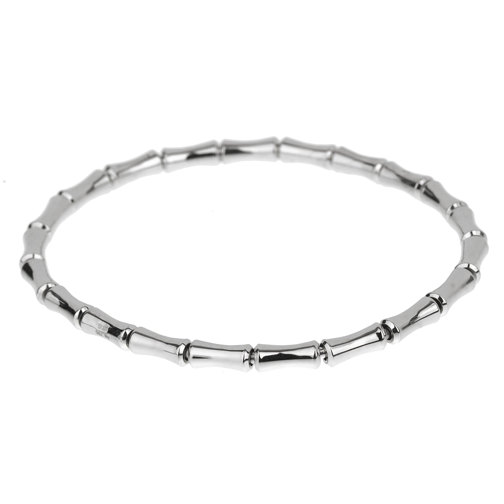 A Gucci showcasing the iconic Bamboo motif in 18k white gold, the bracelet features a stretchable core for a seamless look and perfect for everyday wear.