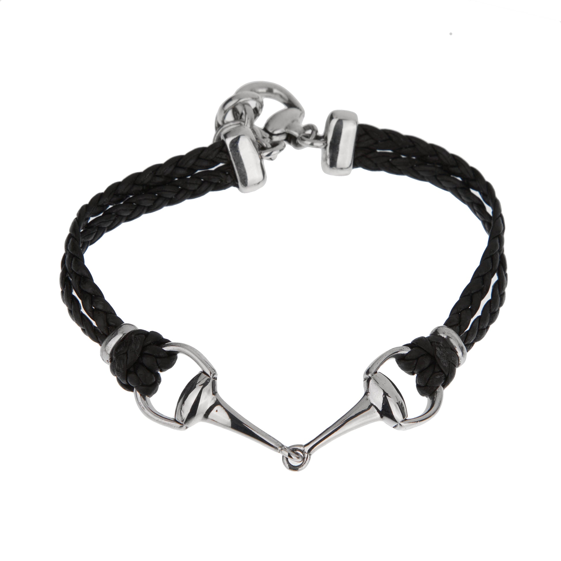 Gucci Horsebit Sterling Silver and Braided Black Leather Bracelet - 7 1/2"