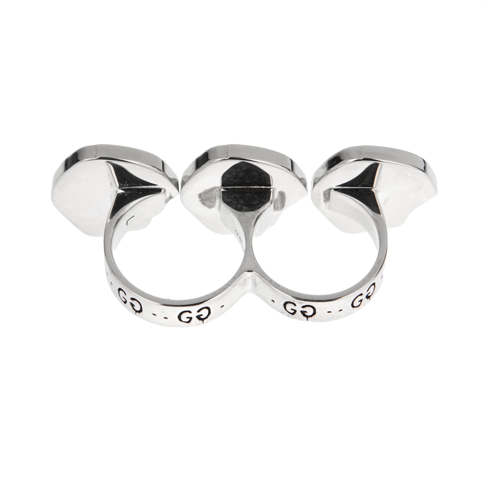 Gucci Skull 3 Motif 2 Finger Sterling Silver Ring "Small"