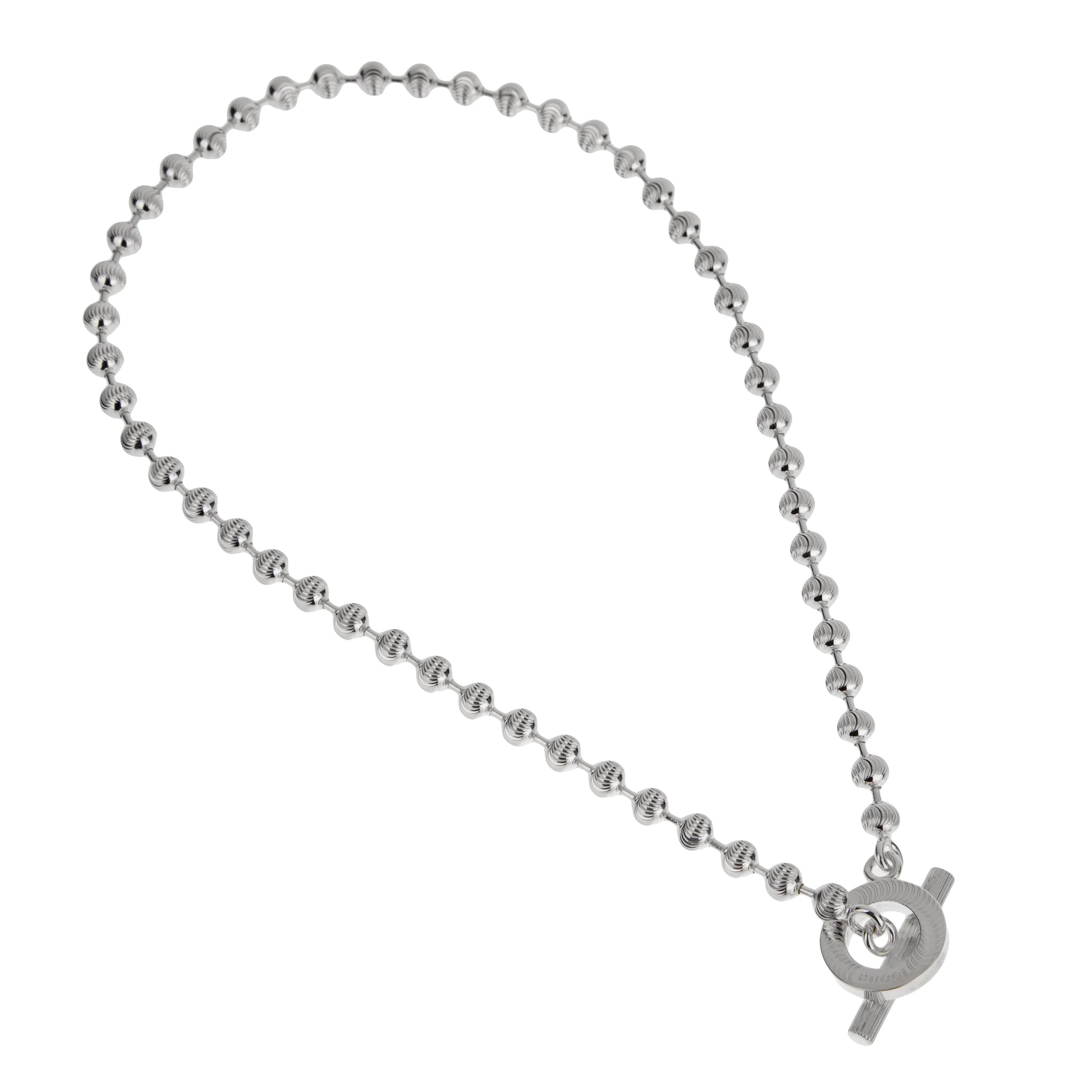 Gucci Sterling Silver Beaded Diamond Cut Boule Necklace Size M - 15"