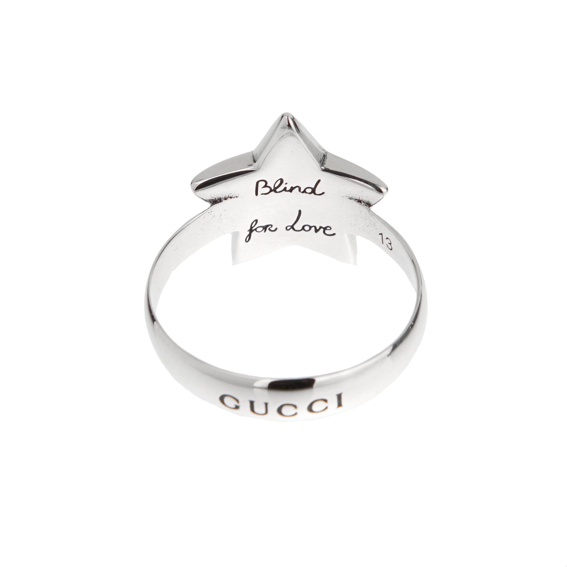 Gucci Sterling Silver Feline Star Blind for Love Ring Sz 6 1/2