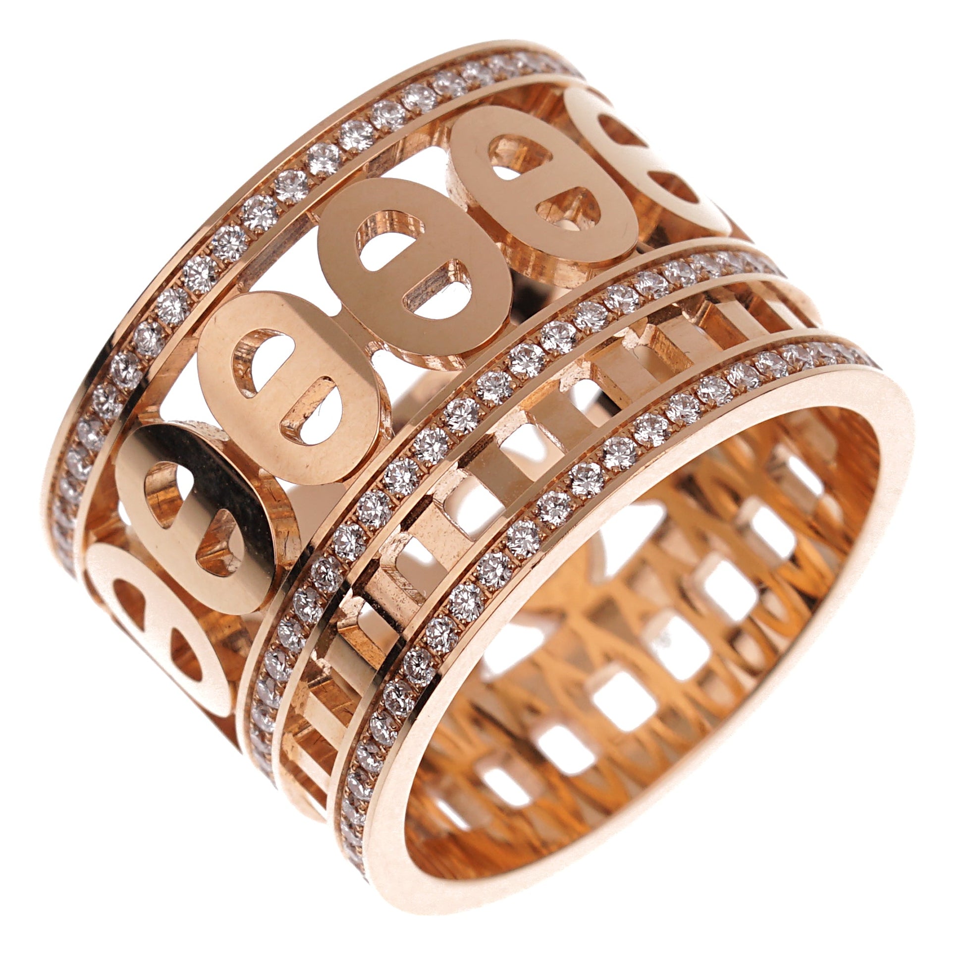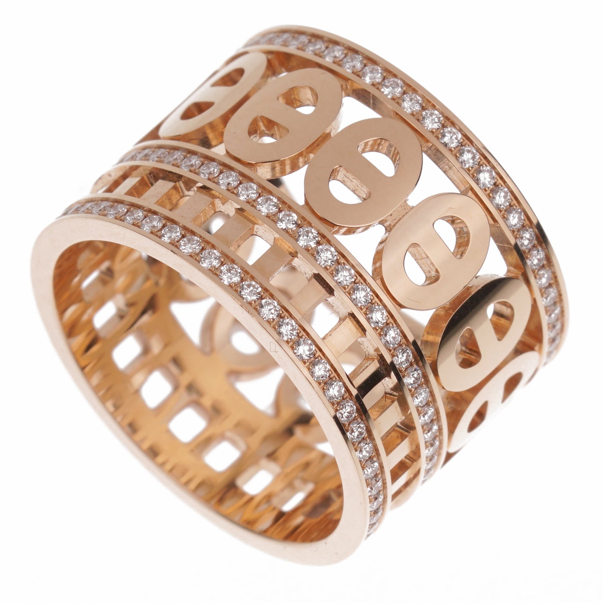 Hermes Chaine d'Ancre Divine Rose Gold Diamond Ring Sz 6 1/2