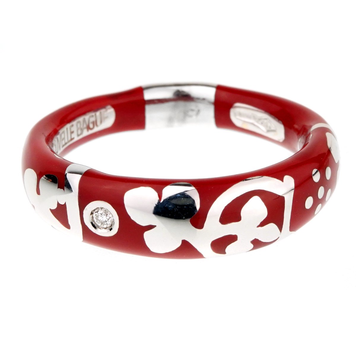 La Nouvelle Bague Red Enamel White Gold Diamond Ring