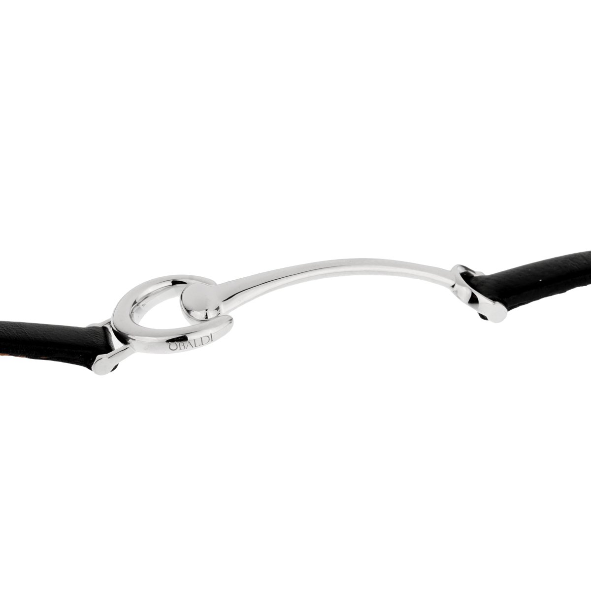 A fabulous handcrafted “Horse bit” bracelet in 18k white gold with black calfskin leather strap. The HorseBit is a symbol of elegance in the equestrian world.