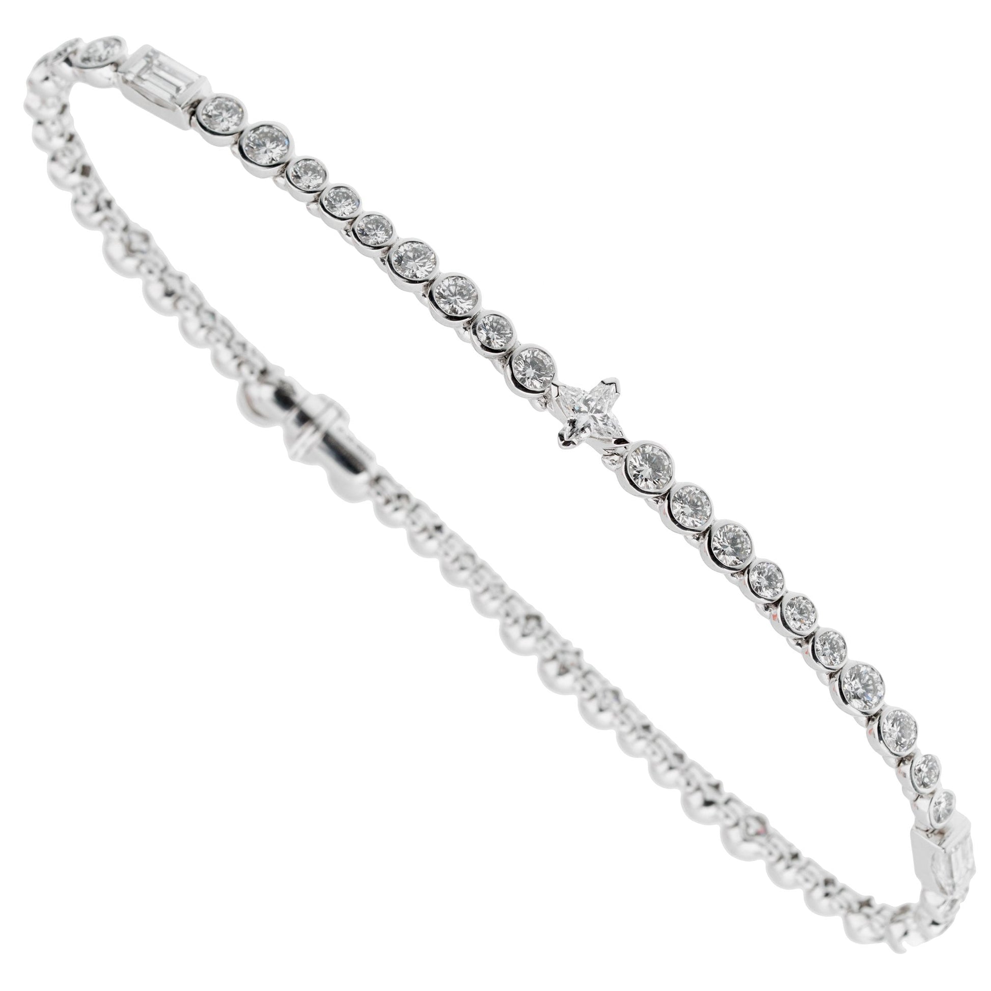 Constructed from the finest 18k white gold, the bracelet emanates an unparalleled luster, symbolizing purity, strength, and prestige. This precious metal beautifully complements the luminosity of the selected diamonds, making the bracelet an ideal adornment for any attire, adding a touch of elegance and luxury to your ensemble.