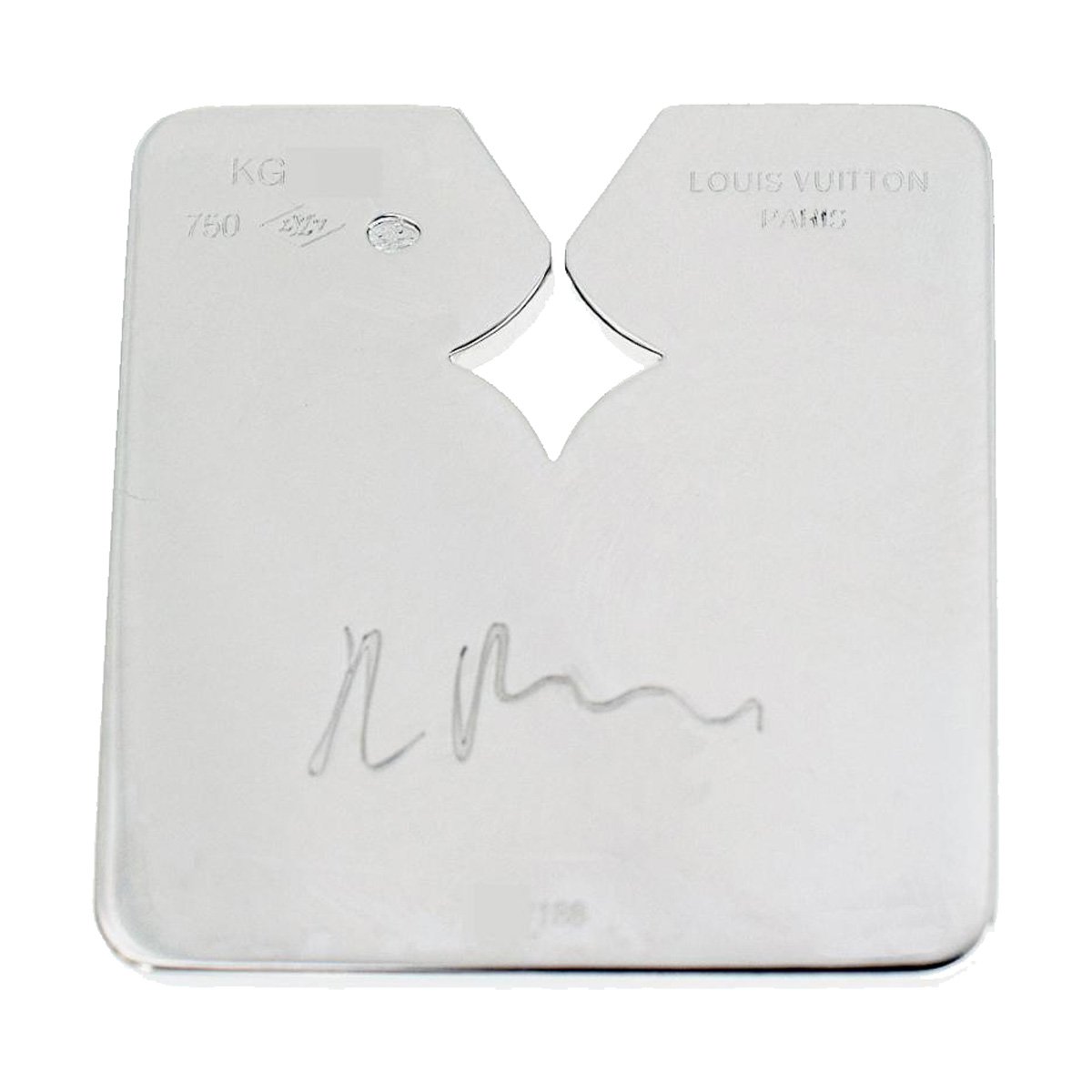 A chic Louis Vuitton white gold necklace of 188 pieces set with round brilliant pink sapphires in 18k white gold. The pendant is 1 inch long and 1 inch wide; the necklace measures 26" and can be worn at any length you prefer. Modern and versatile, this Louis Vuitton necklace is a real standout.