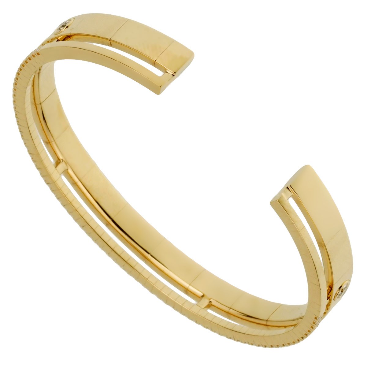 Marli Diamond Yellow Gold Slip On Cuff Bangle Bracelet