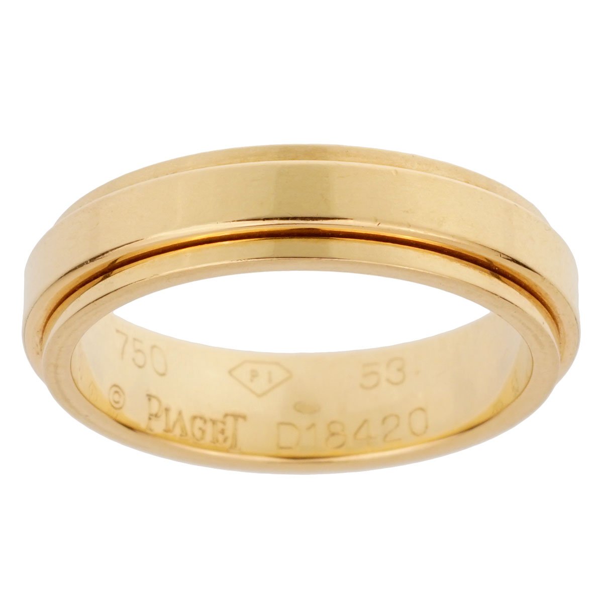 A chic Piaget Possession ring featuring a spinning center band set in 18k yellow gold. The ring measures a size 6 1/4