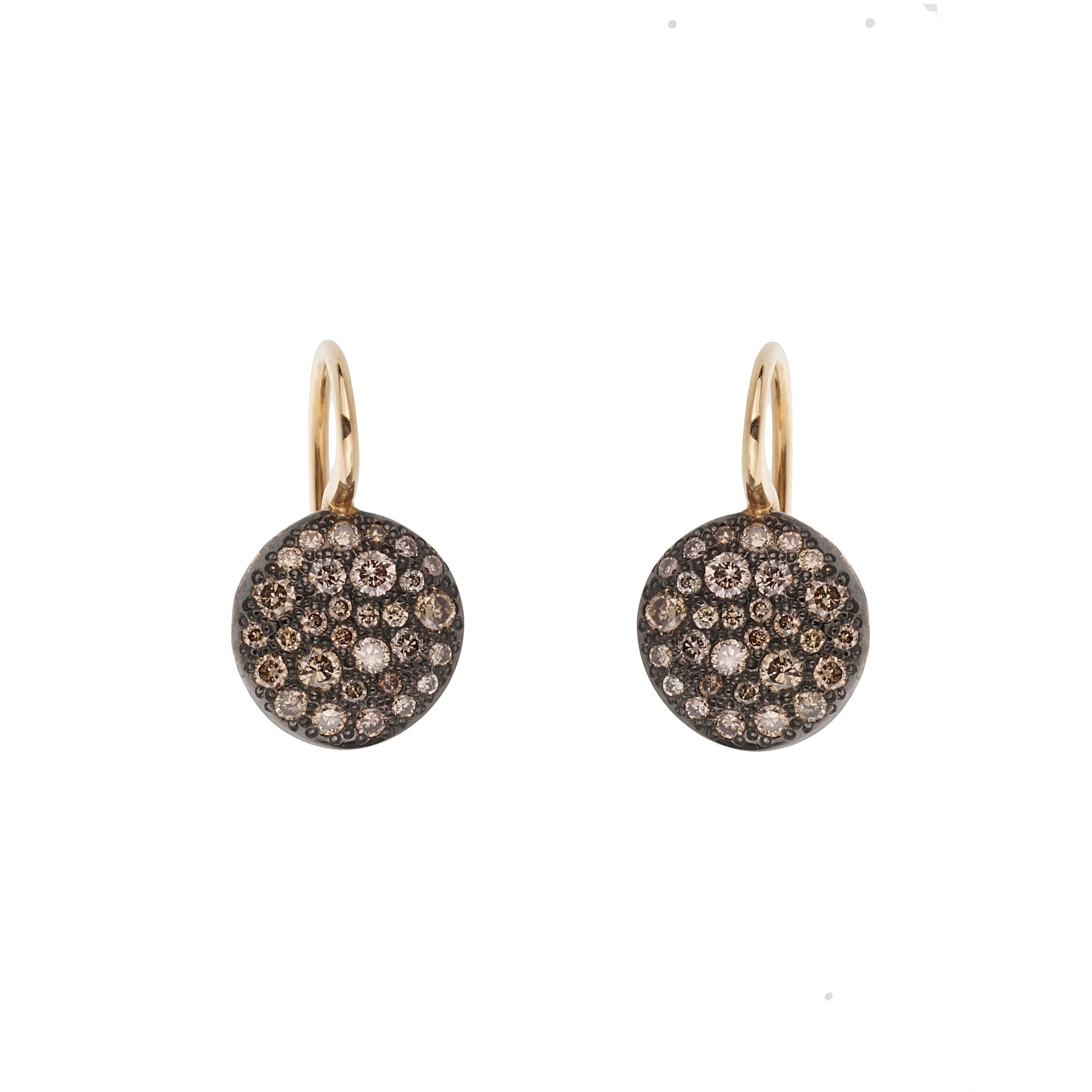The softly domed silhouette gives these earrings a sculptural quality, while the warm contrast between the darkened pavé setting and rose gold lever-back closures adds dimension and contemporary sophistication. The earrings sway gently with movement, catching light with subtle intensity and echoing the laid-back glamour of Pomellato’s Milanese heritage.