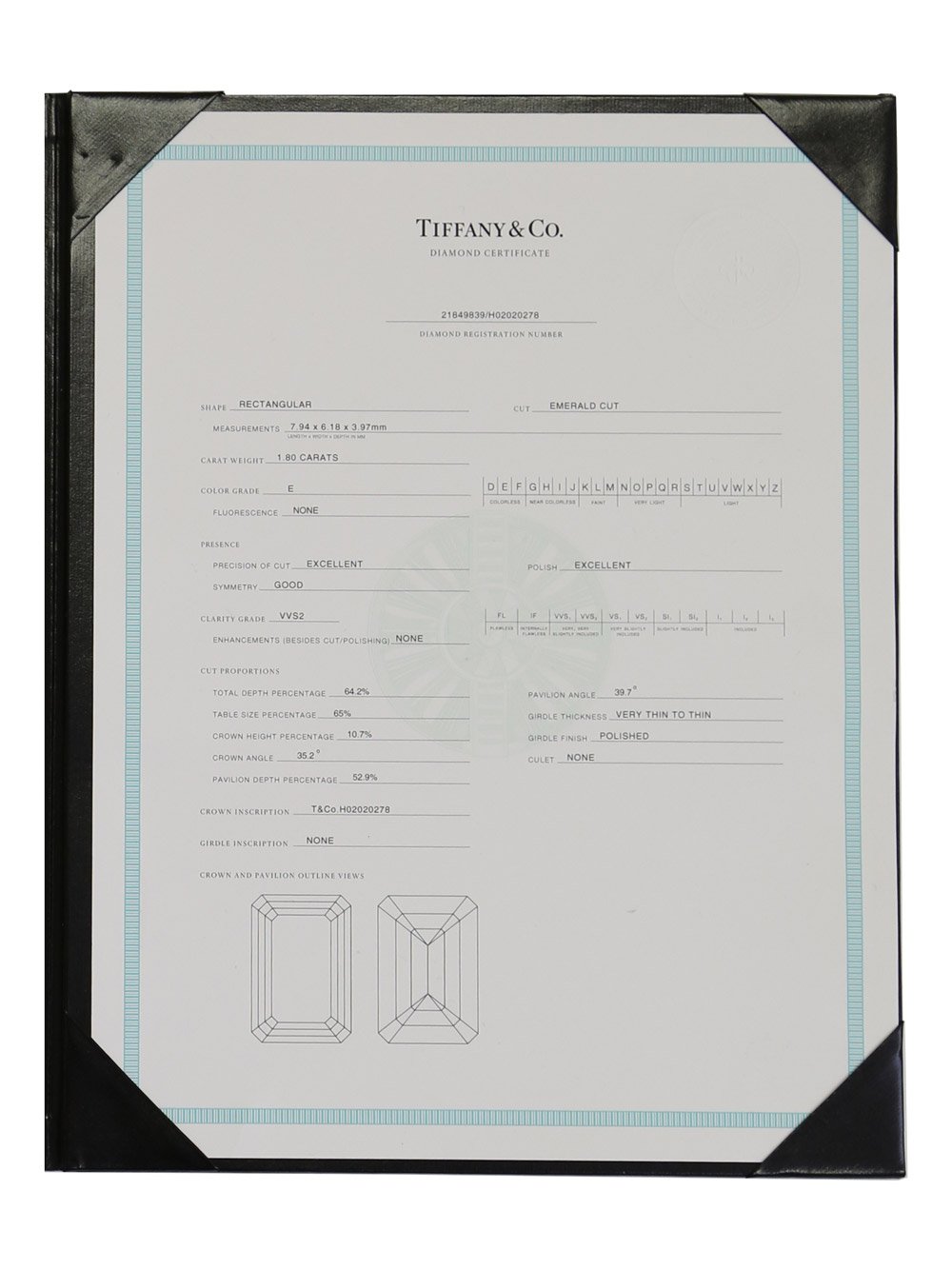 If actions speak louder than words, then this stunning Platinum Engagement Ring from Tiffany & Co undoubtedly represents a truly profound declaration of love and commitment. The large central Vvs2 Clarity E Color Diamond is a jaw-dropping 1.80ct unto itself, and is flanked on both sides by smaller Vs1-Vs2 D-E Color Tapered Baguette Diamonds. One of the finest Engagement Rings we've ever seen, and one which is sure to make your lucky lady the envy of her family and friends for years to come!