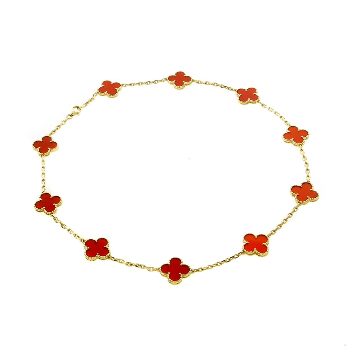 A stunning authentic Van Cleef & Arpels "Vintage Alhambra" Carnelian 10 motif necklace in 18k yellow gold